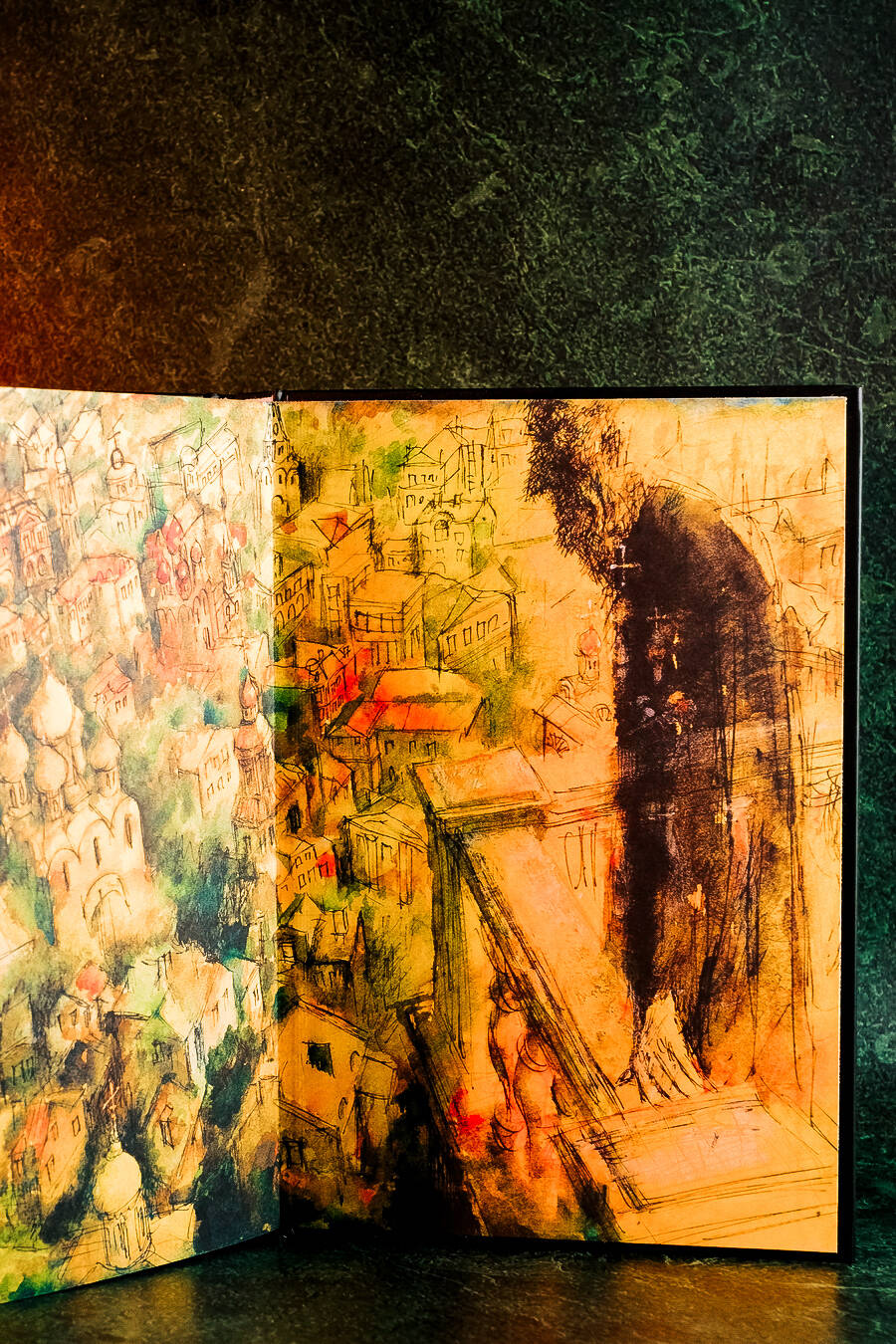 Иллюстрации к «Мастеру и Маргарите» сам Геннадий Калиновский (1929-2006) считал лучшим своим проектом. Судьба их во многом напоминает судьбу булгаковских рукописей: они были опубликованы только спустя 15 лет с даты создания, в 2001-м году, а в 2002-м году художник получил за них гран-при конкурса «Книга года». Геннадию Калиновскому удалось непредставимым образом взломать «визуально-идеологический код» великого романа Булгакова, словно бы напрямую проникнув в создание автора - такой сильным эффект на зрителя и по сей день оказывают его уникальные акварели.