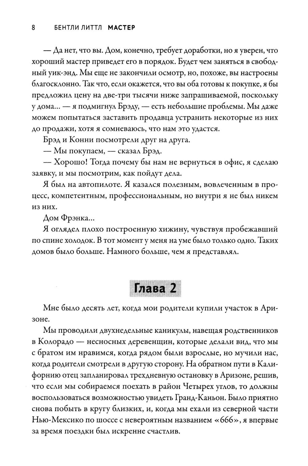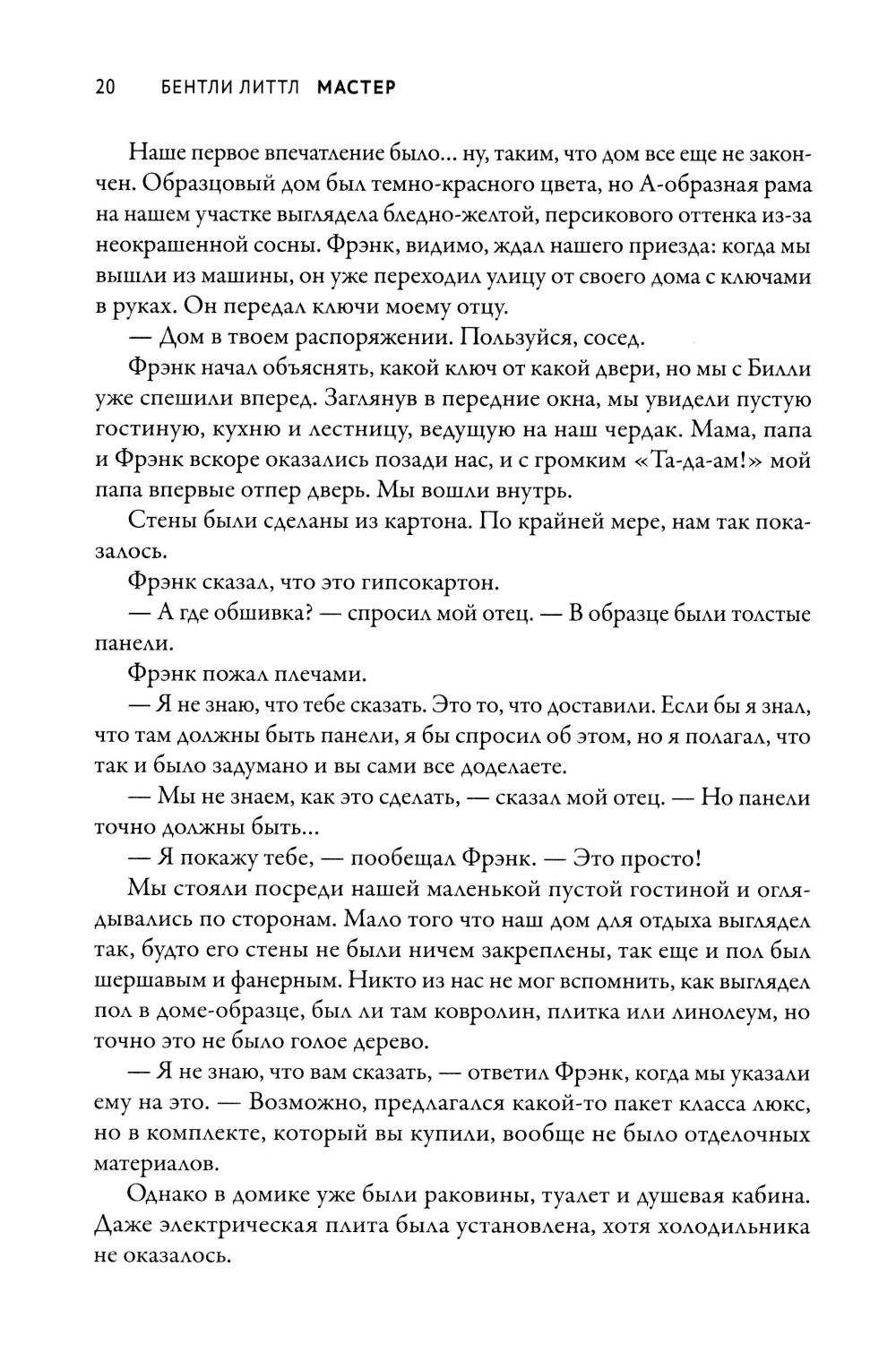 Даже повзрослев, Дэниел Мартин никак не мог выбросить из головы Фрэнка Уоткинса - странного, нескладного и даже немного пугающего человека, встреченного им в детстве. Труднее всего было забыть отрешенный взгляд Фрэнка, будто тот был зомби или пришельцем, а может - просто сумасшедшим, кто знает. Этого человека, представившегося мастером на все руки, наняли родители Дэниела для постройки летнего домика, и это кажущееся таким безобидным решение привело к трагическим последствиям и череде ужасных событий. Миновали годы, и повзрослевший Дэниел совершает роковую ошибку, решая найти Уоткинса, за которым по всей стране тянется длинный кровавый след. Чем ближе наш герой подбирается к Мастеру, шаг за шагом открывая страшную правду, тем больше крови, боли и ужаса он встречает на своем пути. Ведь таких, как Фрэнк, вокруг нас много, очень много, они строят дома и терпеливо ждут своего часа...| Издательство | Феникс |