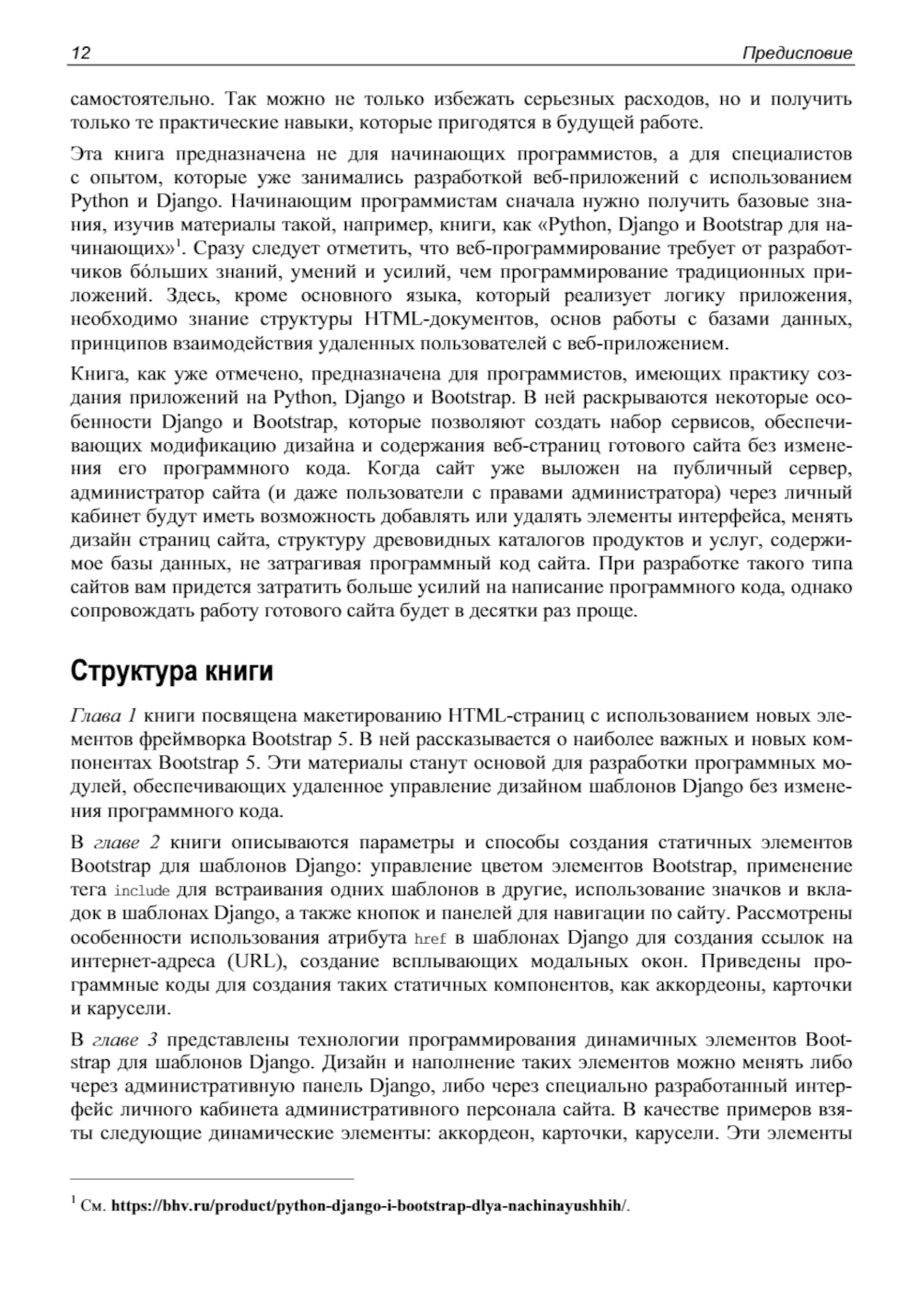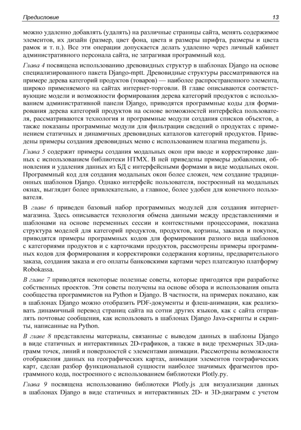 Книга представляет собой практическое руководство по интеграции фреймворка Bootstrap 5 с шаблонами Django для разработки на языке Python современных и динамичных веб-приложений. Рассматриваются основы макетирования HTML-страниц, создание статичных элементов (кнопки, панели, модальные окна, аккордеоны) и разработка динамичных компонентов, управляемых через административную панель Django или интерфейс личного кабинета администратора. Описаны технологии работы с древовидными структурами, создание модальных окон с использованием библиотеки HTMX, а также базовые модули для разработки интернет-магазина, включая корзину, заказы и оплату. Приведены полезные советы по работе с файлами PDF, анимацией, переводами на другие языки и почтовыми сообщениями. Отдельное внимание уделено визуализации данных с помощью библиотек Plotly. py и Plotly. js для создания интерактивных 2D- и 3D-графиков. Книга имеет интерактивный цифровой аналог, позволяющий запускать на выполнение программные модули всех примеров, скачивать листинги программ, озвучивать текст и переводить его на различные языки, а также смотреть цветные иллюстрации.| Издательство | BHV(БХВ) |