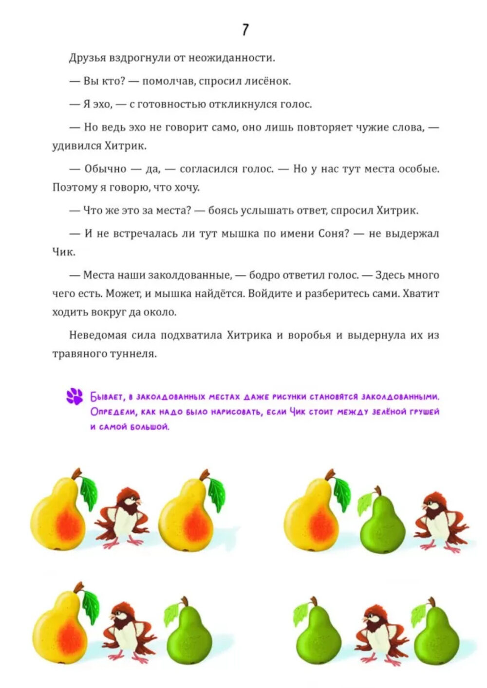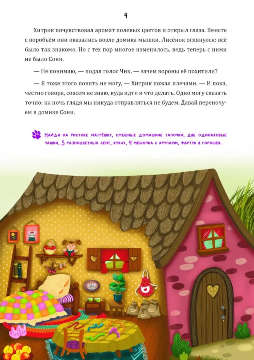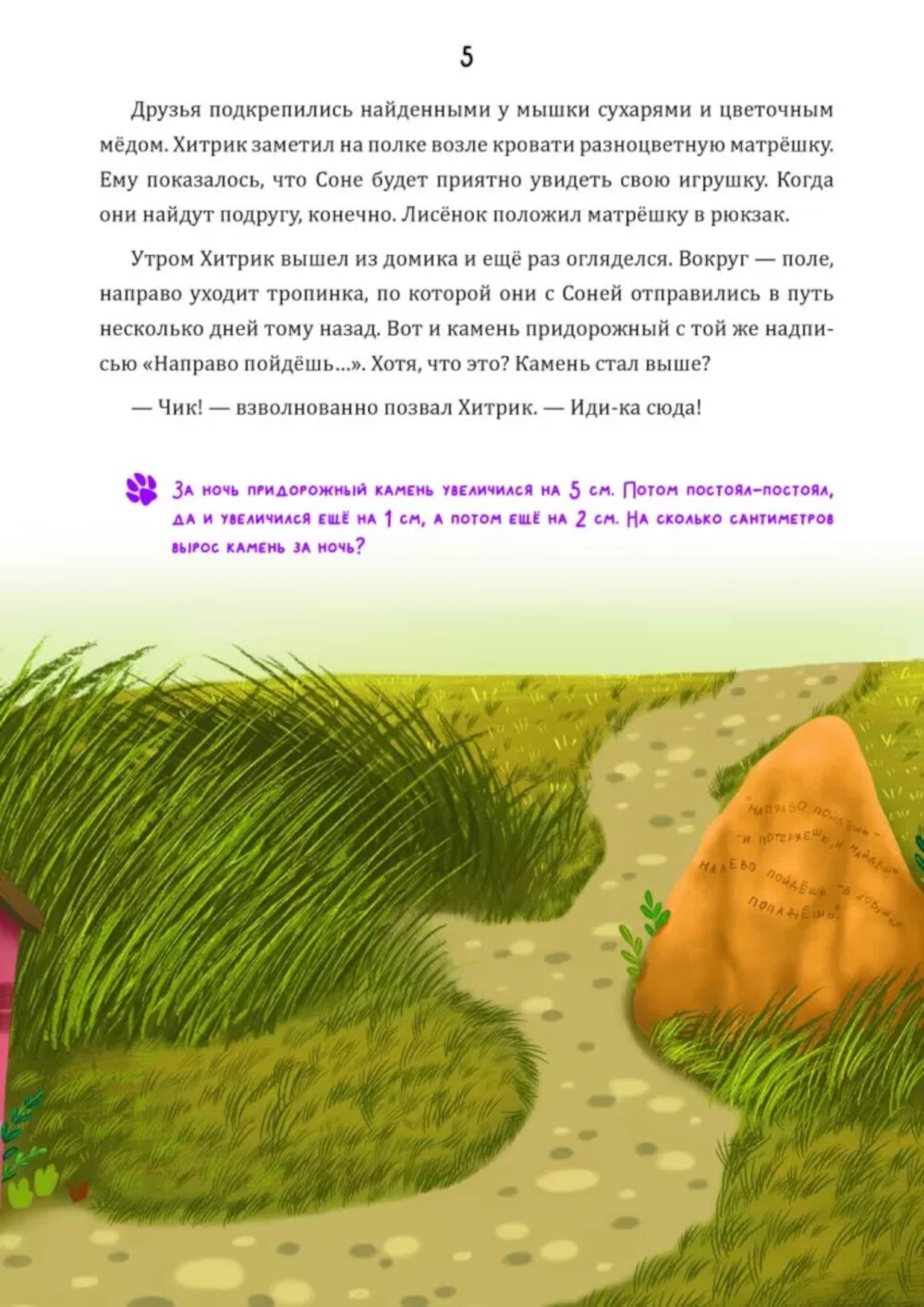Мышку Соню похитили! Лисёнок Хитрик и воробей Чик отправились на поиски своей подруги, чтобы спасти её из плена злой колдуньи Навреды. Впереди их ждёт долгий путь по заколдованным местам с Грозовым Дубом - но не простой, а математический. Ведь во время увлекательных приключений лисёнку придется решать головоломки и задачки - конечно же, с помощью юных читателей. Помоги Хитрику справиться со всеми препятствиями - и одолеть злую Навреду! В этой книжке вы найдёте не только увлекательную историю о любознательном лисёнке, но и: - игры с буквами - задания на внимательность - логические задачки - задания на счёт| Издательство | Каро |