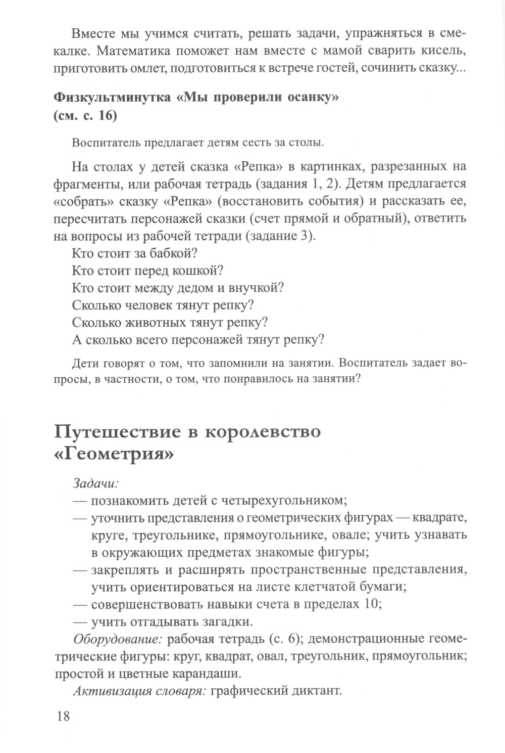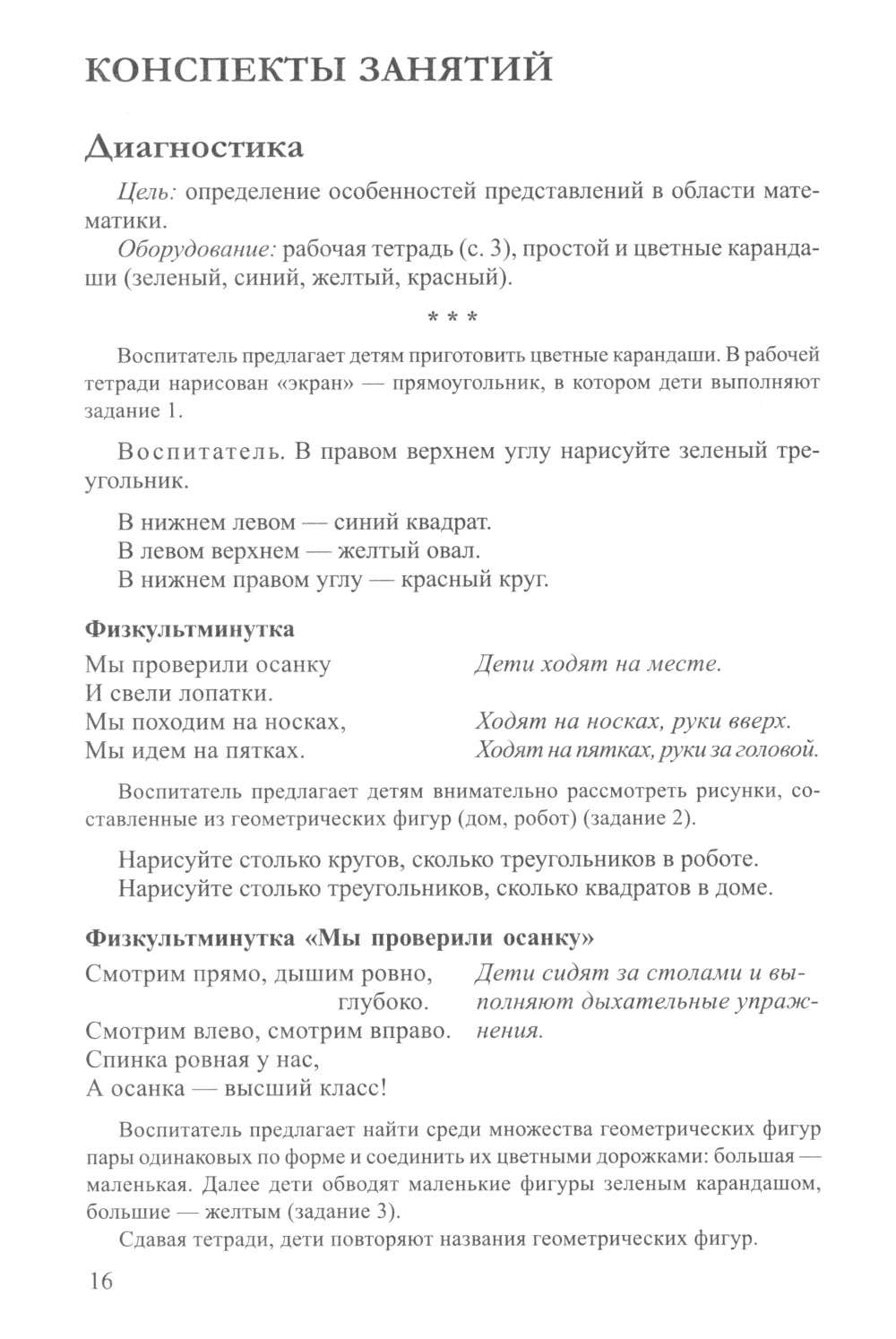 Книга составлена в соответствии с ФГОС ДО по формированию системы элементарных математических представлений у детей 5-7 лет. Задания в ней направлены на овладение ребенком навыками счета, умением применять его для определения количества, на ознакомление с геометрическими предметами, развитие способностей ориентироваться во времени и пространстве. Пособие содержит также прописи для формирования представлений о графическом изображении цифр и подготовки руки к письму. В учебно-методический комплект входит рабочая тетрадь «Математика от О до 10», которая может быть использована как на специальных занятиях по математике, так и для индивидуальной работы с ребенком в детском саду и дома. Рекомендовано родителям и педагогам для индивидуальных и групповых занятий с детьми.| Издательство | Творческий центр Сфера |