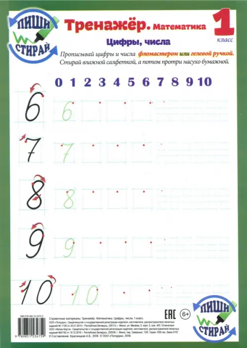 Аннотация: Математика. 1 класс. Цифры, числа. Тренажер. Пиши-стирай