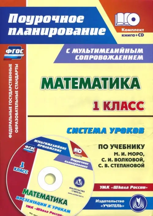 Предлагается комплект (книга + диск), состоящий из пособия с поурочными разработками по курсу "Математика" и электронного приложения с презентациями, разработанный в соответствии с положениями ФГОС НОО, ориентированный на работу по учебнику М.И. Моро, С.И. Волковой, С.В. Степановой "Математика. 1 класс" (М.: Просвещение, 2018), входящему в УМК "Школа России".