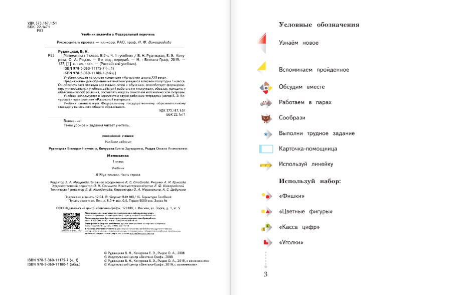 Учебник предназначен для обучения математике учащихся в первом полугодии 1 класса. Он обеспечивает плавную адаптацию детей к обучению, способствует формированию универсальных учебных действий работать по инструкции, образцу, находить и объяснять способ решения, составлять модель сюжетной математической ситуации.