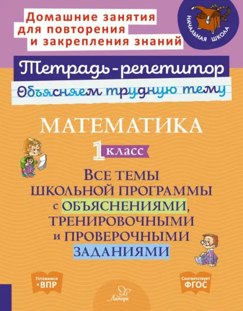 В книге представлены с простыми объяснениями и наглядными примерами самые важные и сложные темы учебной программы для 1 класса. Такими темами являются: состав числа; приёмы сложения и вычитания; сравнение чисел; приёмы решения простых задач на сложение и вычитание и др. В качестве тренировочных упражнений к каждой теме даны задания для самостоятельного выполнения и ответы к ним. В рабочей тетради также есть задания для смекалистых. Книга прекрасно подойдёт для дополнительных домашних занятий с первоклассниками.