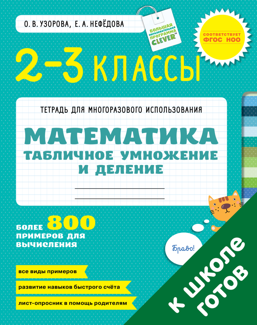 Таблице умножения не одна тысяча лет. Деревянные и глиняные таблички с ней находили при раскопках и в Японии, и в Китае, и в Индии, возраст этих табличек почти 3000 лет. А при раскопках городов Древней Месопотамии нашли глиняные таблички, возраст которых составляет целых 5000 лет! В европейской культуре авторство таблицы умножения приписывается знаменитому греческому математику Пифагору. Впервые же в школьную программу таблица умножения была введена в Англии в конце Средних веков. Примеры в тетради для многоразового использования «Математика. 2-3 классы. ТАБЛИЧНОЕ УМНОЖЕНИЕ И ДЕЛЕНИЕ. Более 800 примеров для вычисления» нужно решать на время. Хороший результат - 1 столбик без ошибок - за 1,5-2 минуты, таблицу - за 2-3 минуты. Если заниматься каждый день по 5-10 минут, через неделю решение примеров доводится до автоматизма.