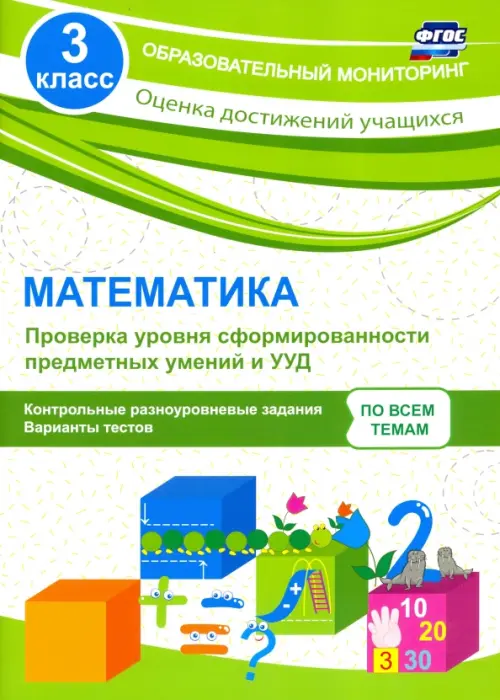 Пособие составлено в полном соответствии с Федеральным государственным образовательным стандартом начального общего образования и содержит проверочные работы (тесты) по темам курса математики в третьем классе. Все проверочные работы состоят из четырёх вариантов по двенадцать заданий в каждом. Задания разнообразны по типологии и уровням сложности (с выбором одного или нескольких правильных ответов; на составление выражений или уравнений; установление соответствия между решением и условием задачи; заполнение таблиц; составление задач по схеме и решение их) и направлены на формирование у обучающихся предметных умений и универсальных учебных действий, основ логического мышления, а также обеспечивают проведение качественного оценивания достижения планируемых предметных и метапредметных результатов.