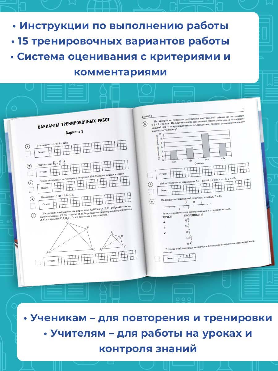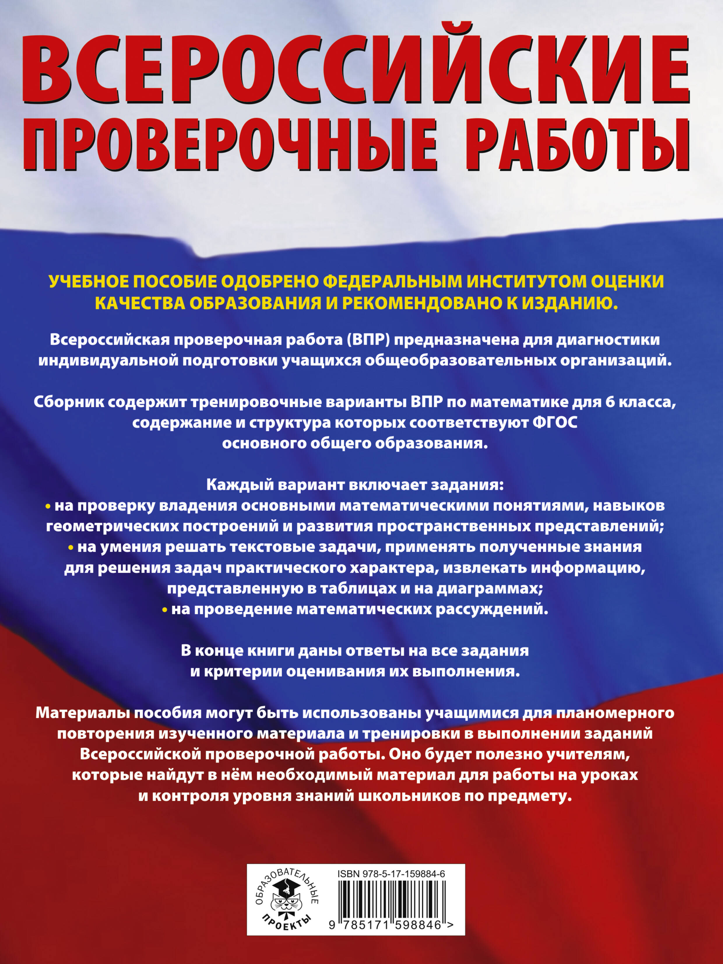 Данное пособие предназначено для учащихся 6-х классов общеобразовательных организаций. Оно позволяет в кратчайшие сроки проверить свои знания, потренироваться в выполнении заданий и тем самым успешно подготовиться к выполнению Всероссийской проверочной работы по математике по итогам обучения в 6-м классе. Пособие содержит 15 тренировочных вариантов проверочных работ. Содержание проверочной работы соответствует Федеральному государственному образовательному стандарту основного общего образования. В конце книги даны ответы на все задания, решения и критерии оценивания. Материалы пособия будут полезны учителям, которые найдут в нём материал для работы на уроках и контроля уровня знаний школьников по предмету. Учебное пособие одобрено Федеральным институтом оценки качества образования (ФИОКО) и рекомендовано к изданию.| Издательство | Издательство "АСТ" |