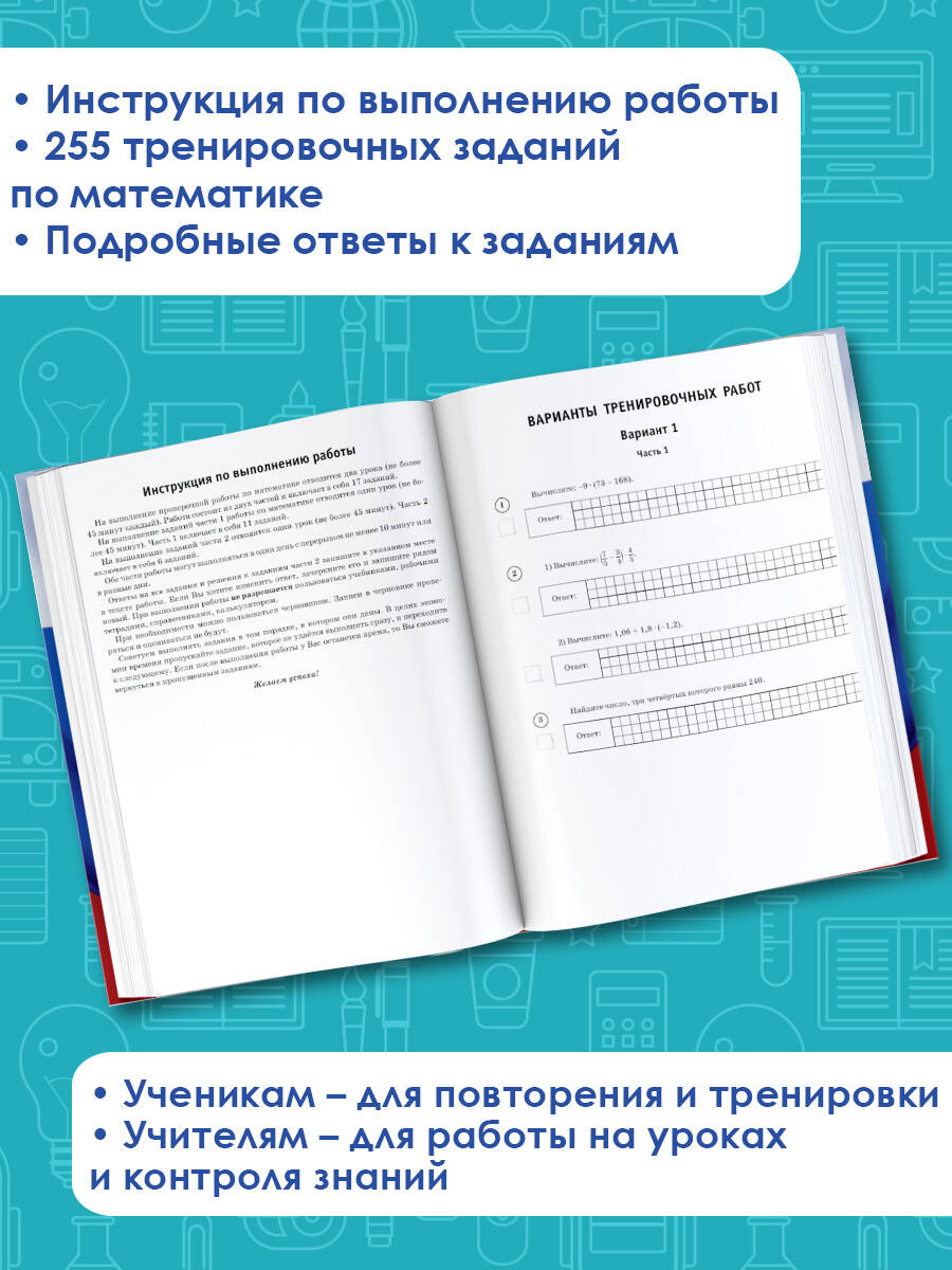 Данное пособие предназначено для учащихся 6-х классов общеобразовательных организаций. Оно позволяет в кратчайшие сроки проверить свои знания, потренироваться в выполнении заданий и тем самым успешно подготовиться к выполнению Всероссийской проверочной работы по математике по итогам обучения в 6-м классе. Пособие содержит 15 тренировочных вариантов проверочных работ. Содержание проверочной работы соответствует Федеральному государственному образовательному стандарту основного общего образования. В конце книги даны ответы на все задания, решения и критерии оценивания. Материалы пособия будут полезны учителям, которые найдут в нём материал для работы на уроках и контроля уровня знаний школьников по предмету.