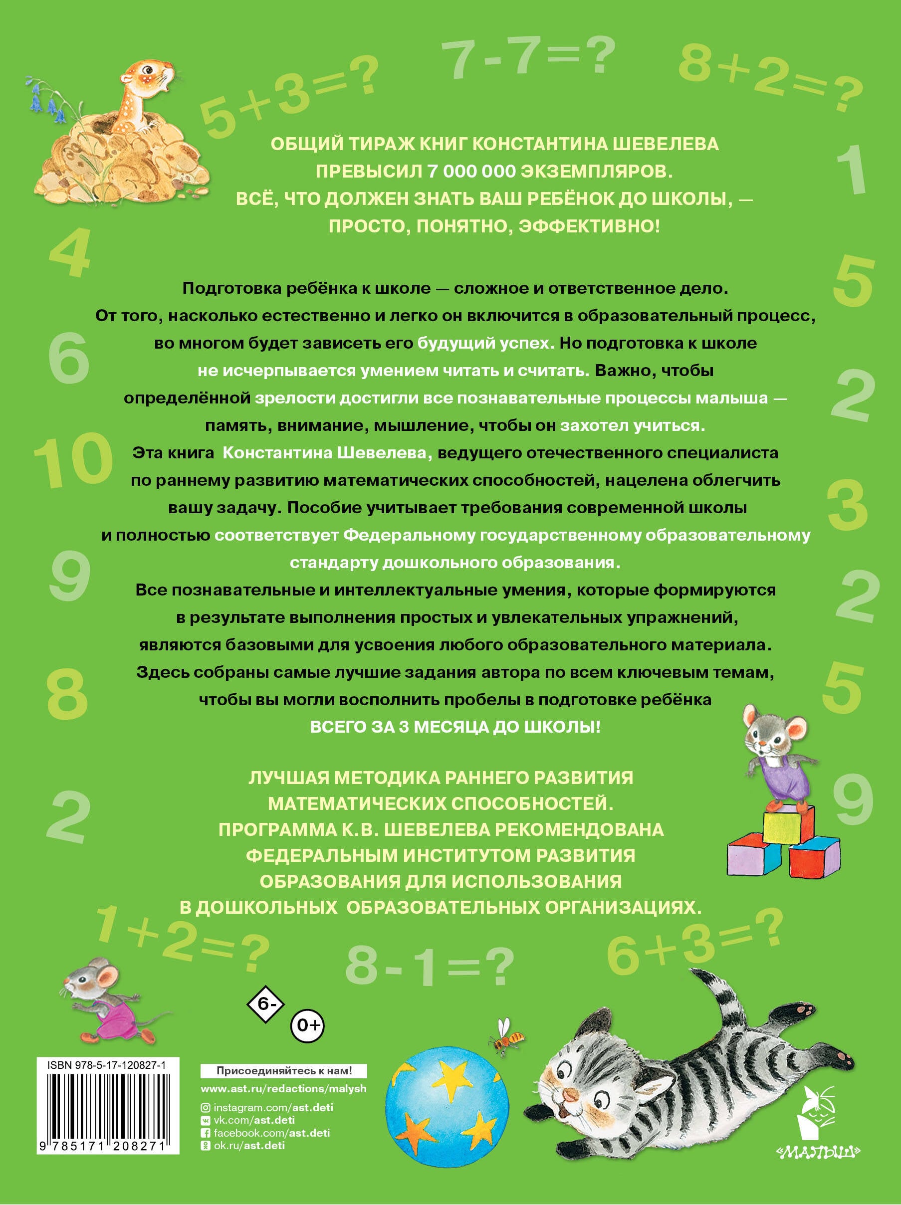 5 причин купить книгу: - уникальная авторская методика, проверенная несколькими поколениями, - раннее развитие математических способностей, - эффективная подготовка к школе, - интересные задания, выхзывающие желание учиться, - включены задания с геометрическими фигурами и телами.| Издательство | ИЗДАТЕЛЬСТВО "АСТ" |
