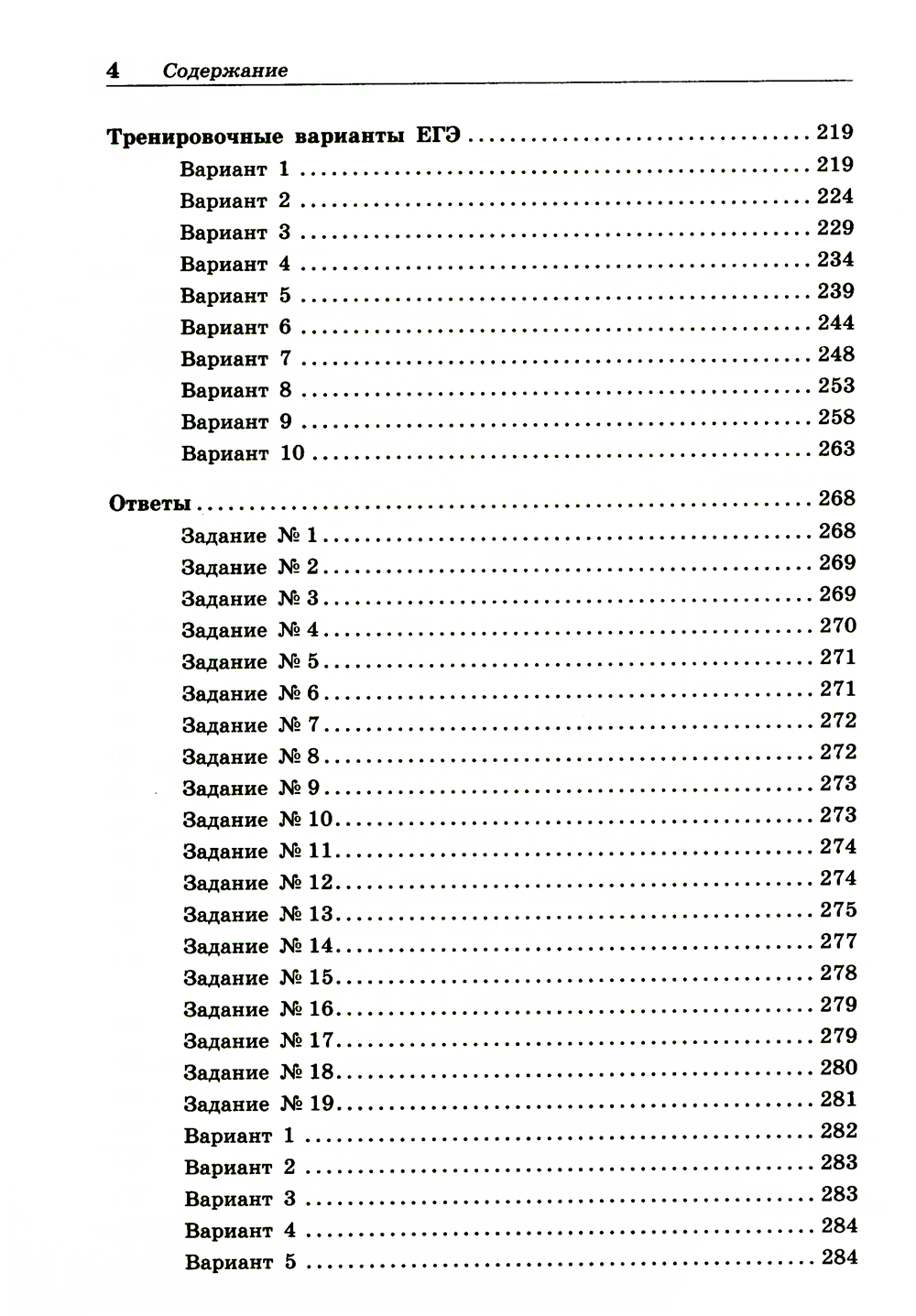 Настоящее пособие составлено на основе задач открытого банка заданий ЕГЭ. Пособие содержит краткое описание каждой из девятнадцати задач ЕГЭ по математике профильного уровня, теоретический материал, примеры решений задач и 10 тренировочных вариантов. Рекомендуется абитуриентам, учителям математики, руководителям кружков и факультативов.