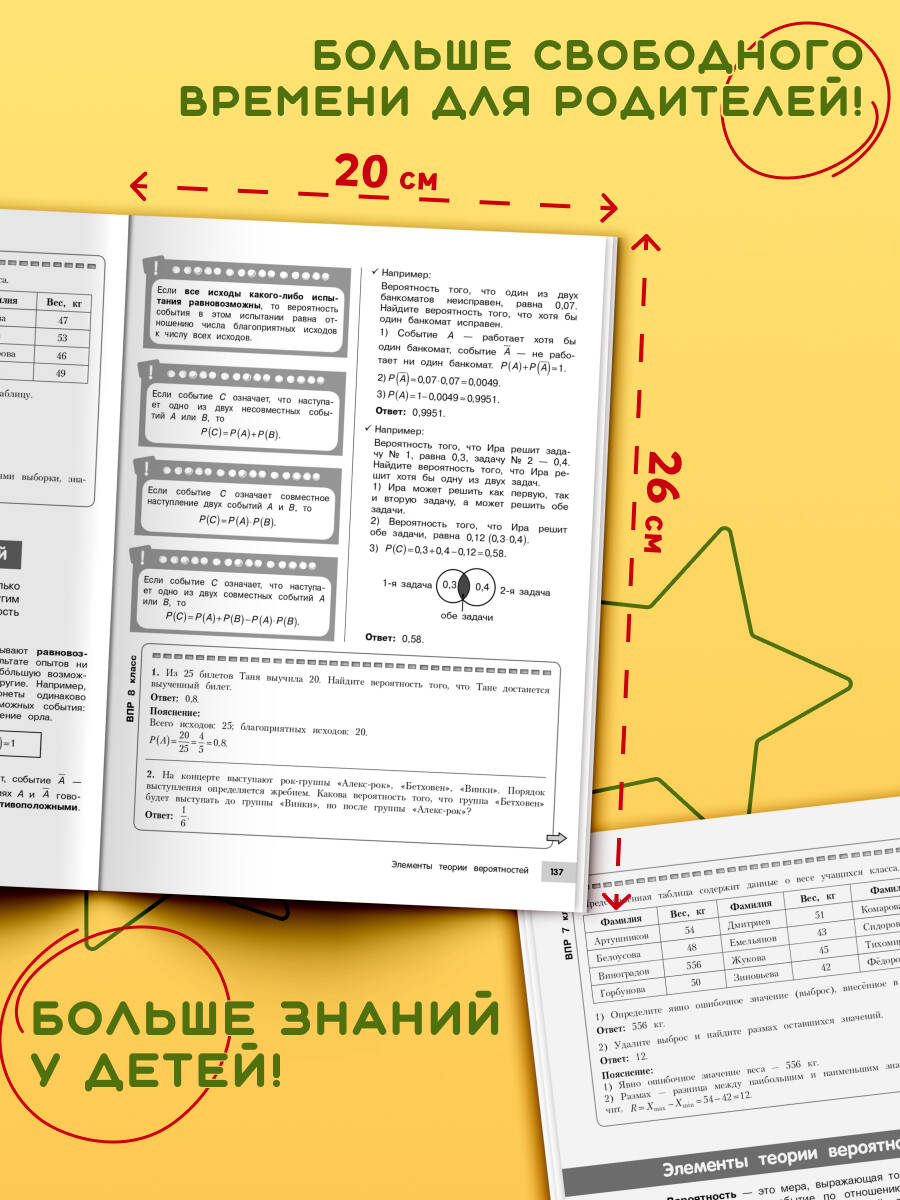 Вам нужно подготовиться к ОГЭ и ВПР по математике, но не знаете, с чего начать? Хотите закрепить полученные в школе знания, не тратя время на лишнюю информацию в учебниках? Тогда эта книга именно для вас! В ней вас ждет: • только нужная теория; • наглядные таблицы и схемы; • полезные подсказки и рекомендации; • решение реальных заданий; • возможность проверить свои знания. В пособии систематизирована информация, которая поможет школьникам написать ВПР, ОГЭ и другие виды итоговых работ. В справочнике вы увидите не сплошной поток текста, а доступную теорию, которая будет подкрепляться практическими заданиями. Книга станет идеальным помощником для школьников 5, 6, 7, 8 и 9 классов, репетиторов и учителей. Также она будет полезна для занятий родителей с детьми. Начните эффективную подготовку к экзаменам 2026 прямо сейчас!| Издательство | ООО "Издательство "Эксмо" |