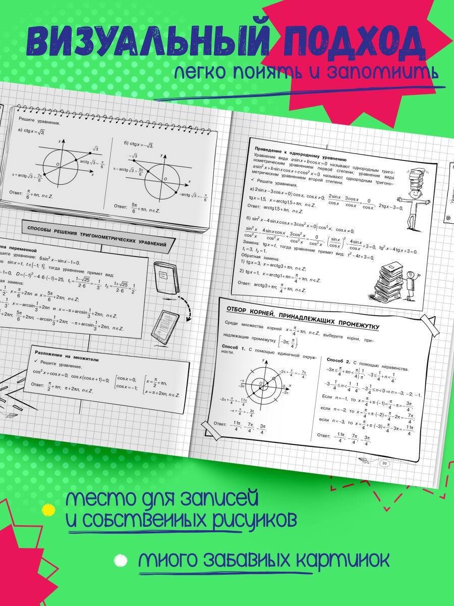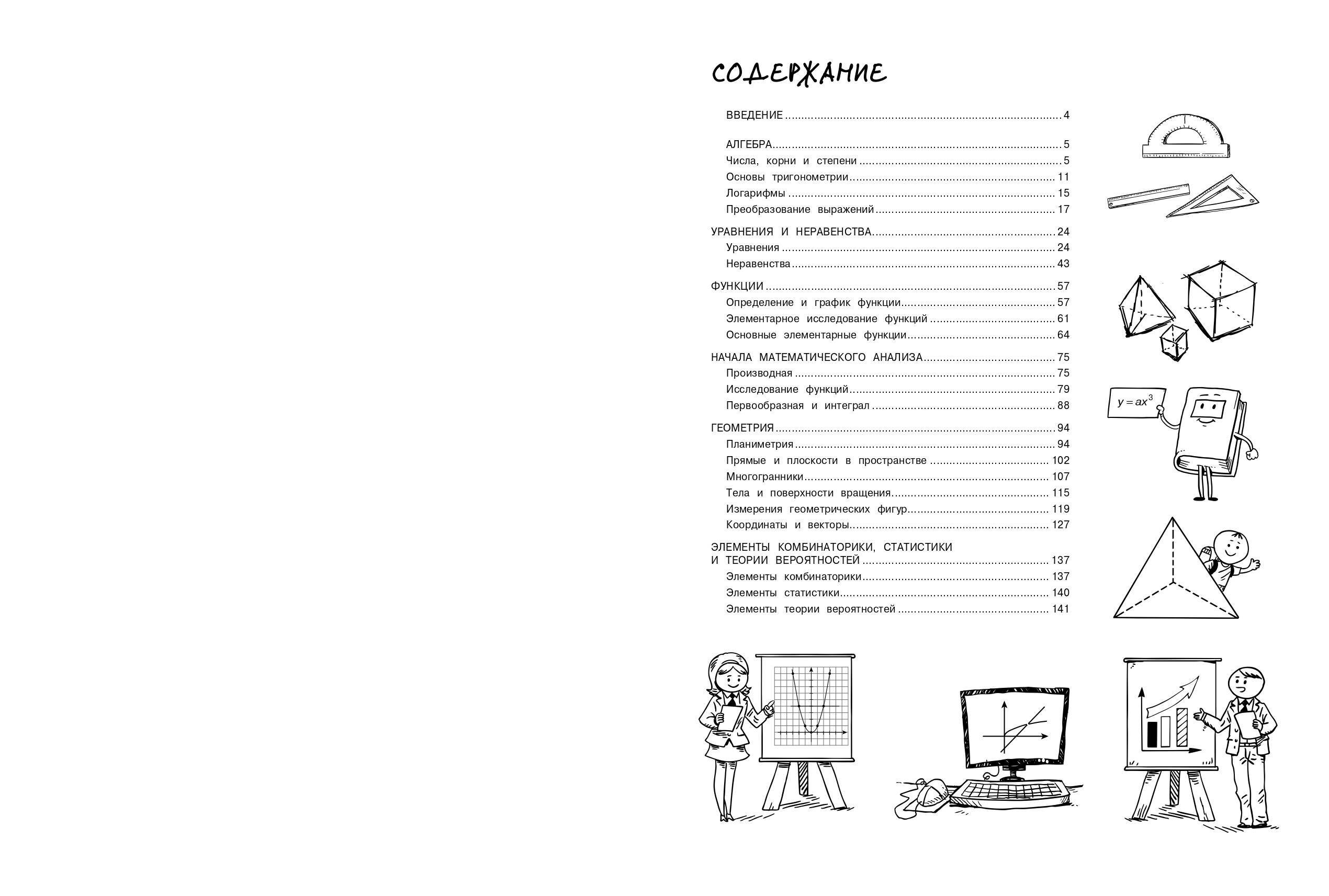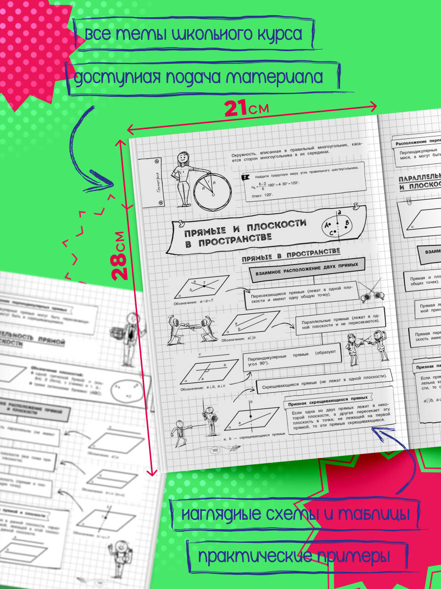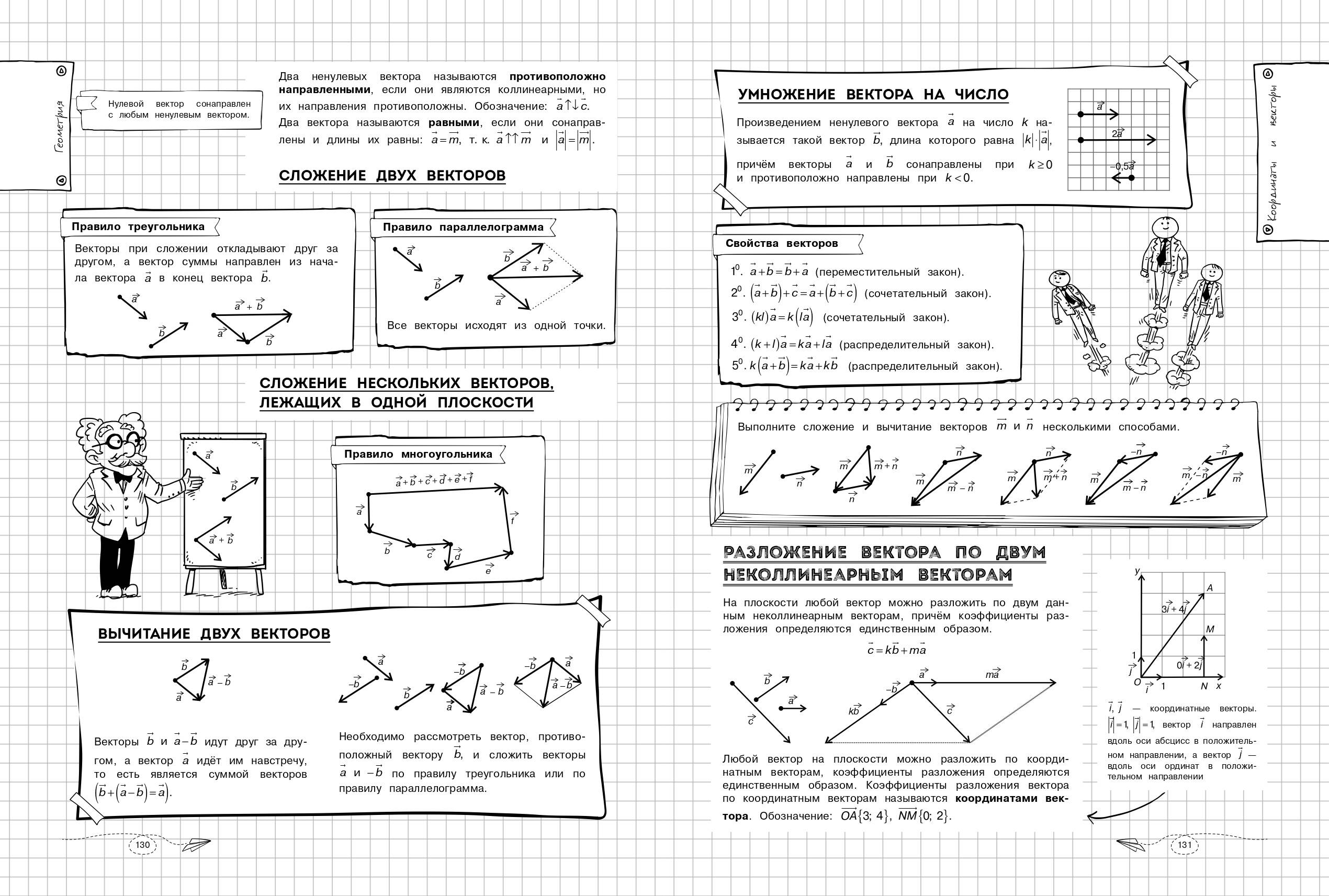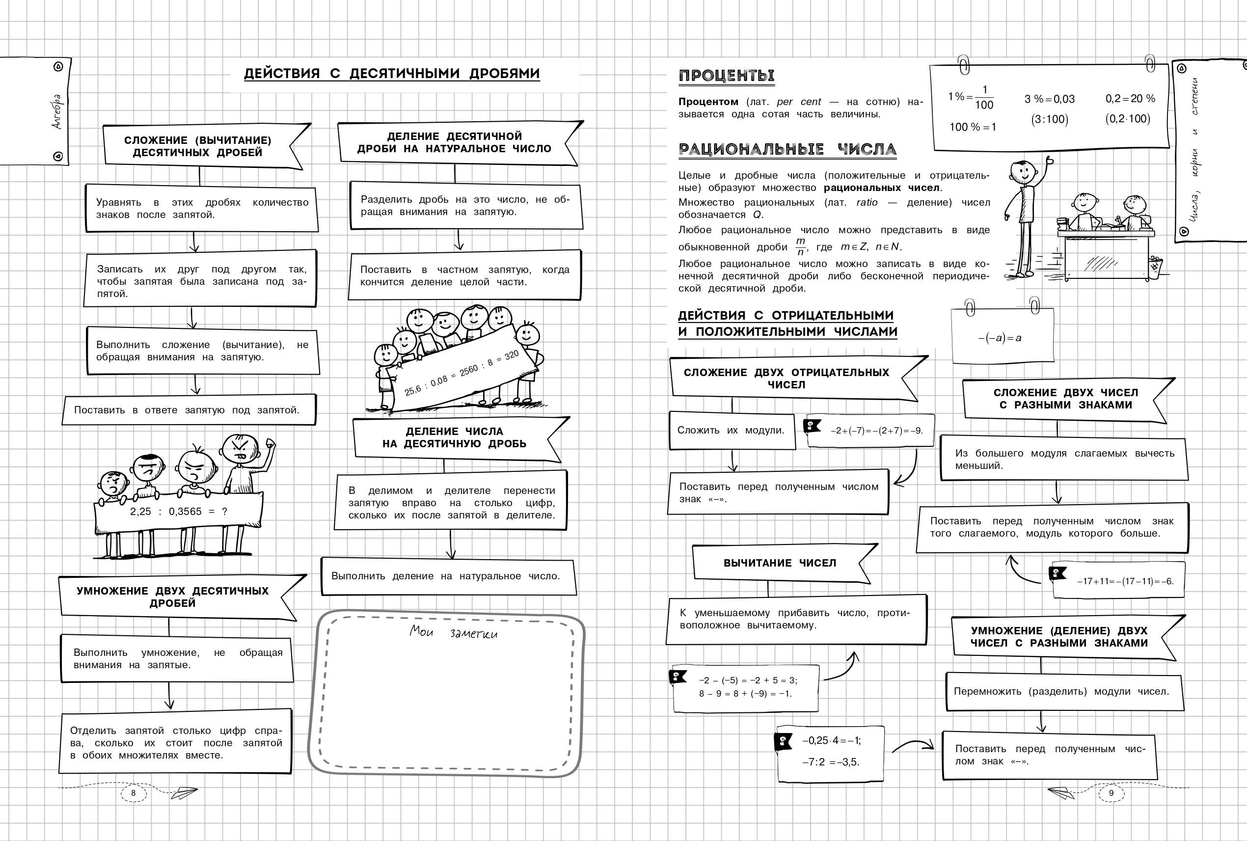 Справочник по математике в наглядных конспектах для учеников 5, 6, 7, 8, 9, 10 и 11 классов превращает изучение каждой темы в увлекательное и познавательное приключение! Книга поможет запоминать и повторять материал на протяжении всего школьного курса. Благодаря наглядной подаче теории с примерами, схемами, а также забавными рисунками, текст становится доступным и интересным. Визуальный подход обеспечивает легкость восприятия и запоминания информации, ведь она оформлена в виде конспектов, словно ученик писал их сам. Всевозможные иллюстрации и места для собственных примеров и примечаний помогут сделать процесс обучения максимально простым и приятным! А при желании можно взять маркеры и сделать свой конспект еще более уникальным и персонализированным! • Все темы школьного курса. • Доступная подача материала. • Практические примеры. • Наглядные схемы и таблицы. • Множество забавных картинок. • Место для ваших записей и собственных рисунков. Погрузитесь в увлекательный мир математики вместе с наглядным справочником для подростков и почувствуйте, как знания становятся ближе, а учеба лучше! Книжка поможет подготовиться к ОГЭ, ЕГЭ и другим экзаменам 2026. Также пособие будет полезно для занятий родителей с детьми.| Издательство | ООО "Издательство "Эксмо" |