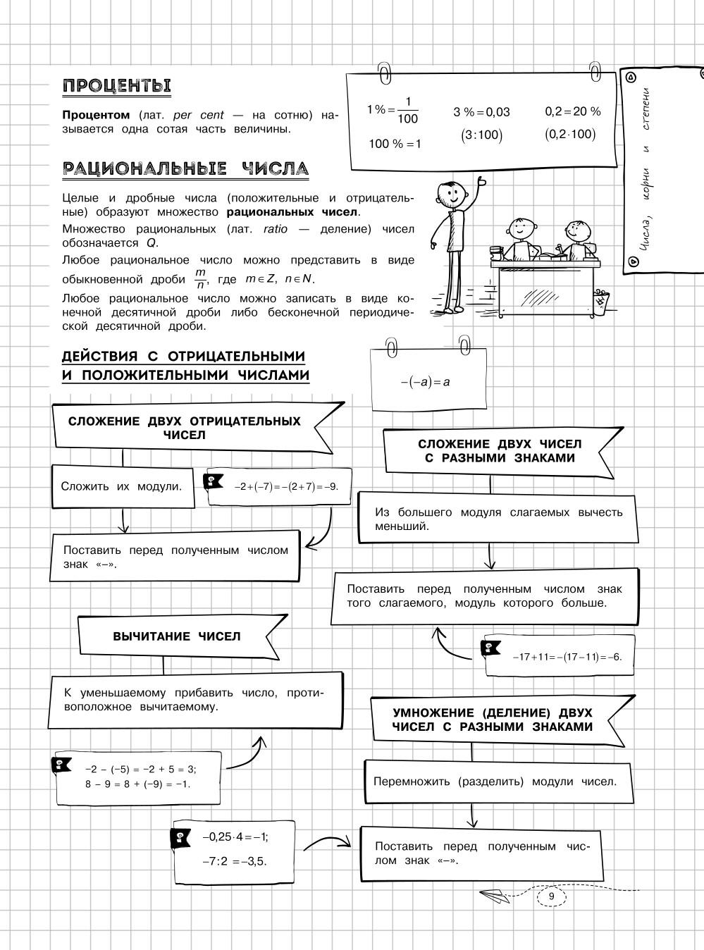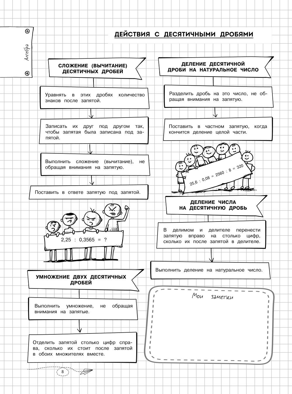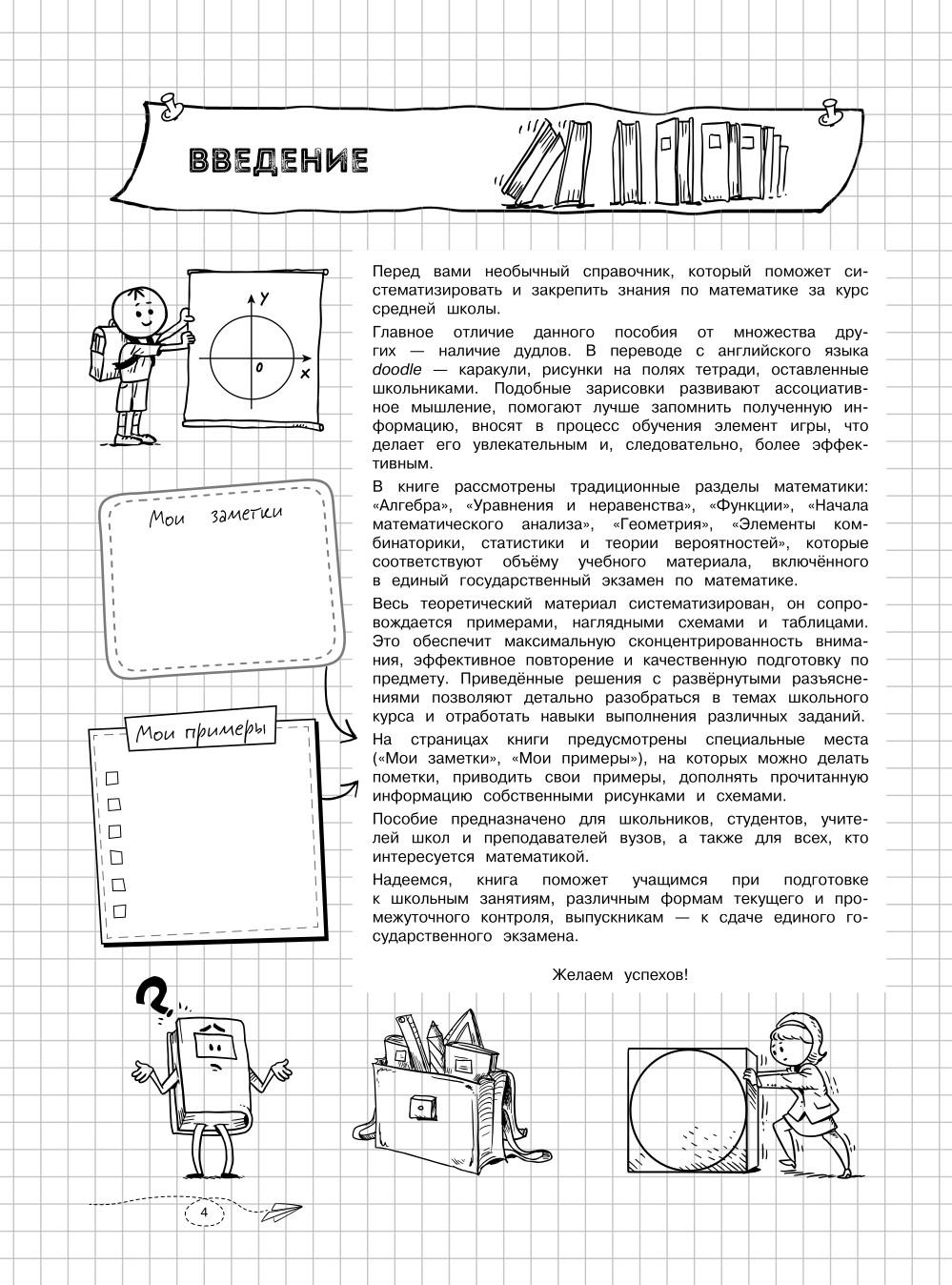 Справочник по математике в наглядных конспектах для учеников 5, 6, 7, 8, 9, 10 и 11 классов превращает изучение каждой темы в увлекательное и познавательное приключение! Книга поможет запоминать и повторять материал на протяжении всего школьного курса. Благодаря наглядной подаче теории с примерами, схемами, а также забавными рисунками, текст становится доступным и интересным. Визуальный подход обеспечивает легкость восприятия и запоминания информации, ведь она оформлена в виде конспектов, словно ученик писал их сам. Всевозможные иллюстрации и места для собственных примеров и примечаний помогут сделать процесс обучения максимально простым и приятным! А при желании можно взять маркеры и сделать свой конспект еще более уникальным и персонализированным! - Все темы школьного курса. - Доступная подача материала. - Практические примеры. - Наглядные схемы и таблицы. - Множество забавных картинок. - Место для ваших записей и собственных рисунков. Погрузитесь в увлекательный мир математики вместе с наглядным справочником для подростков и почувствуйте, как знания становятся ближе, а учеба лучше! Книжка поможет подготовиться к ОГЭ, ЕГЭ и другим экзаменам 2026. Также пособие будет полезно для занятий родителей с детьми.| Издательство | Эксмо |