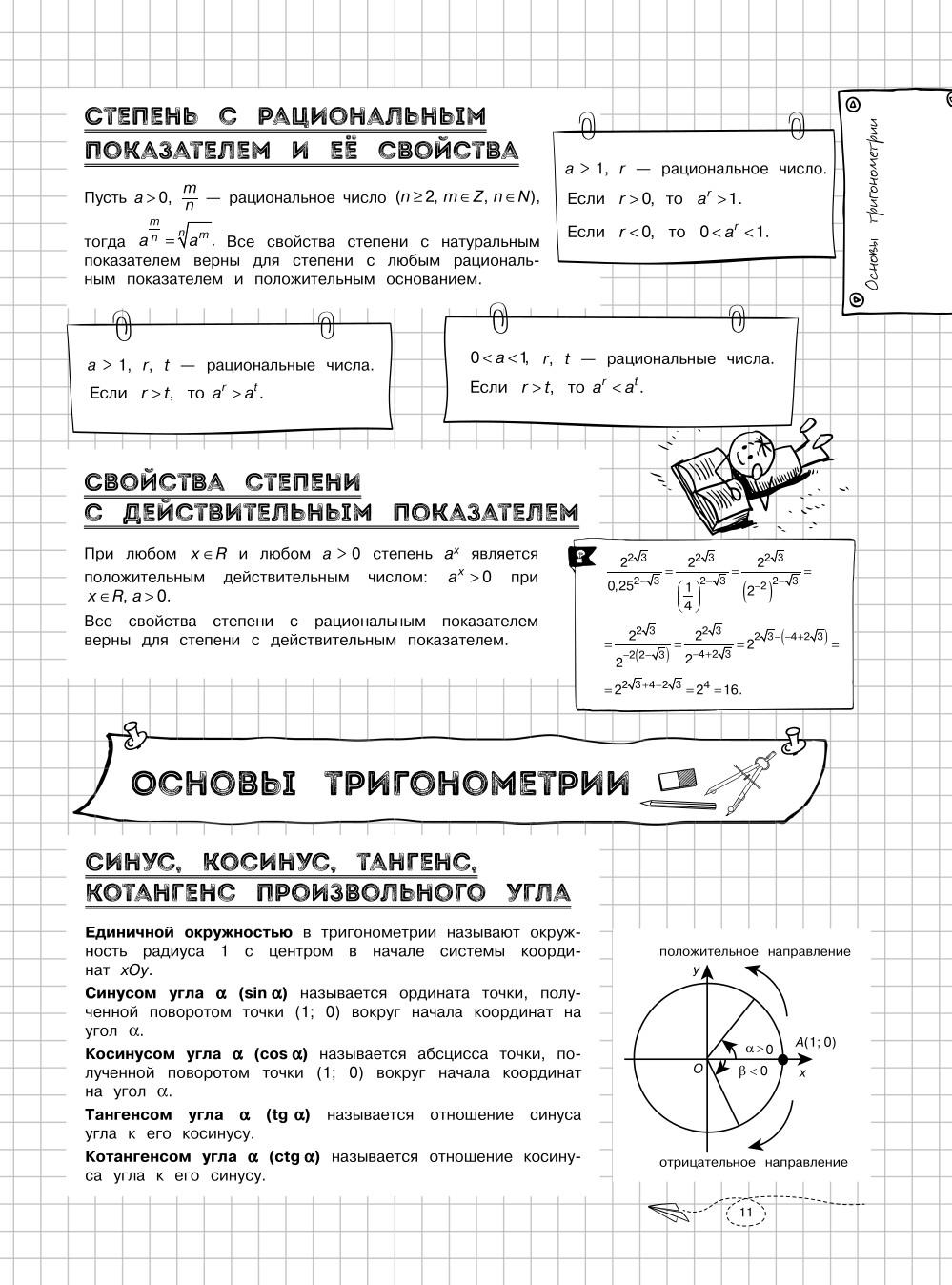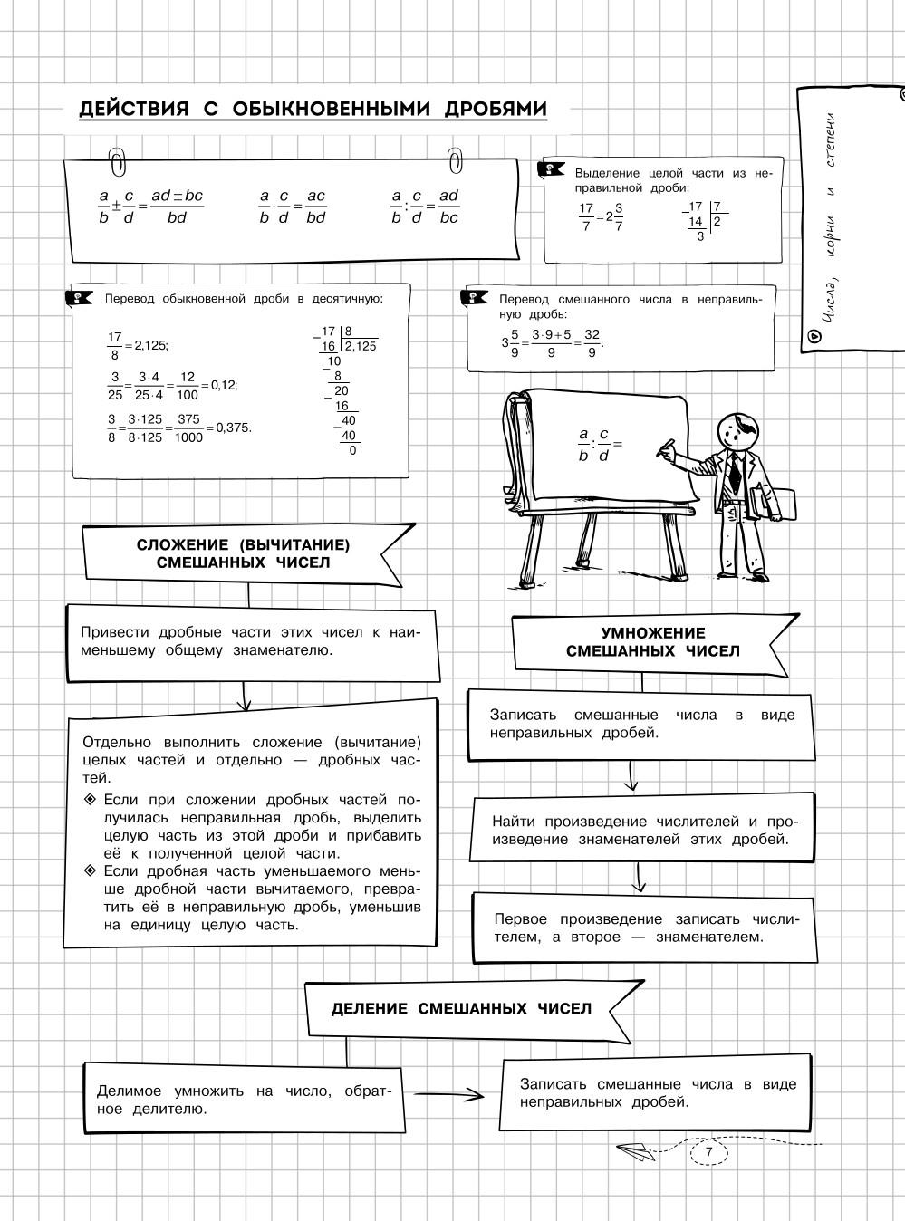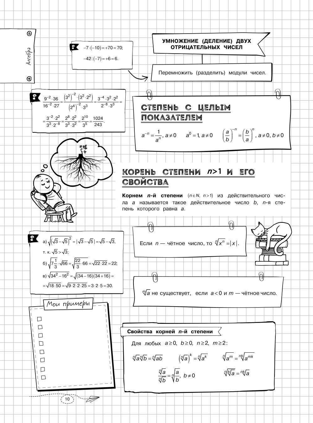 Справочник по математике в наглядных конспектах для учеников 5, 6, 7, 8, 9, 10 и 11 классов превращает изучение каждой темы в увлекательное и познавательное приключение! Книга поможет запоминать и повторять материал на протяжении всего школьного курса. Благодаря наглядной подаче теории с примерами, схемами, а также забавными рисунками, текст становится доступным и интересным. Визуальный подход обеспечивает легкость восприятия и запоминания информации, ведь она оформлена в виде конспектов, словно ученик писал их сам. Всевозможные иллюстрации и места для собственных примеров и примечаний помогут сделать процесс обучения максимально простым и приятным! А при желании можно взять маркеры и сделать свой конспект еще более уникальным и персонализированным! - Все темы школьного курса. - Доступная подача материала. - Практические примеры. - Наглядные схемы и таблицы. - Множество забавных картинок. - Место для ваших записей и собственных рисунков. Погрузитесь в увлекательный мир математики вместе с наглядным справочником для подростков и почувствуйте, как знания становятся ближе, а учеба лучше! Книжка поможет подготовиться к ОГЭ, ЕГЭ и другим экзаменам 2026. Также пособие будет полезно для занятий родителей с детьми.| Издательство | Эксмо |