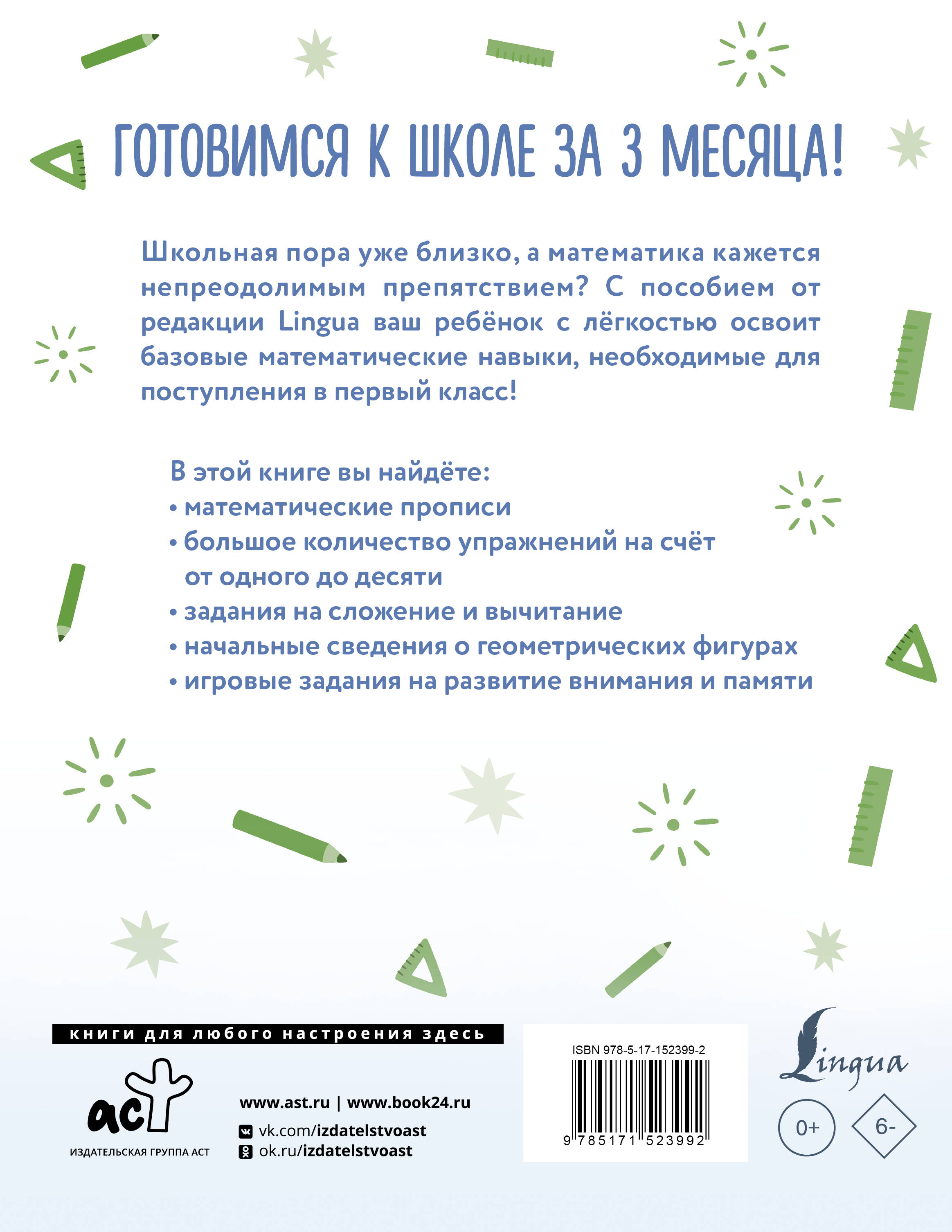 С пособием по математике от редакции Lingua ваш ребёнок с лёгкостью освоит базовые математические навыки, необходимые для поступления в первый класс: научится считать, писать цифры, складывать, вычитать и сравнивать числа. В книге вы также найдёте базовую информацию о геометрических фигурах, упражнения на развитие памяти, внимания и смекалки. Задания сопровождаются весёлыми иллюстрациями. Крупный формат издания облегчит юным ученикам работу с материалом, а большой объём даст возможность закрепить изученное. Издание предназначено для занятий с детьми старшего дошкольного возраста, но может быть полезно и для учащихся начальной школы.| Издательство | ИЗДАТЕЛЬСТВО "АСТ" |