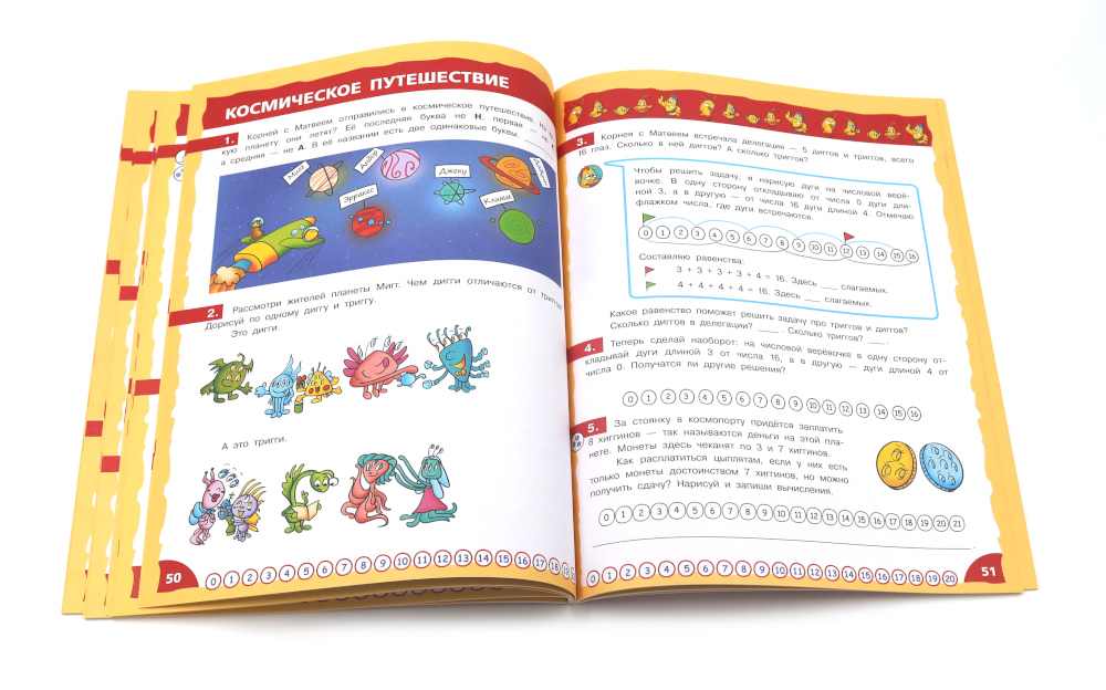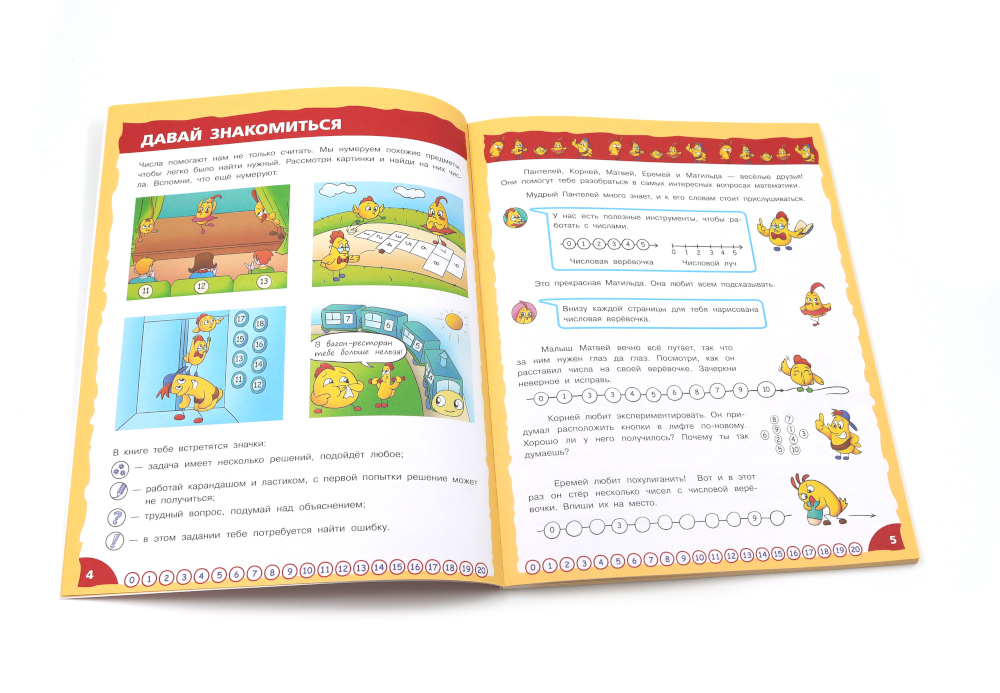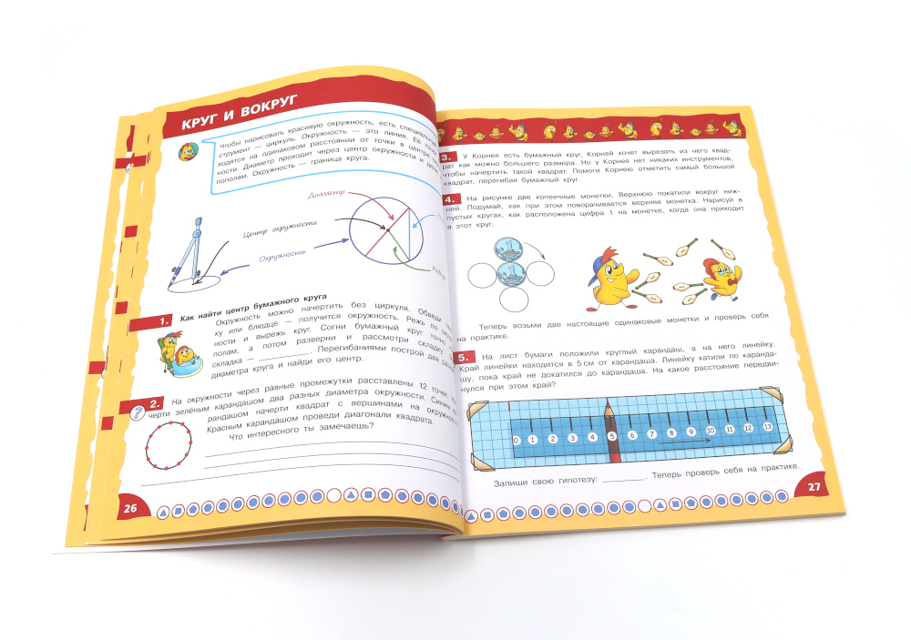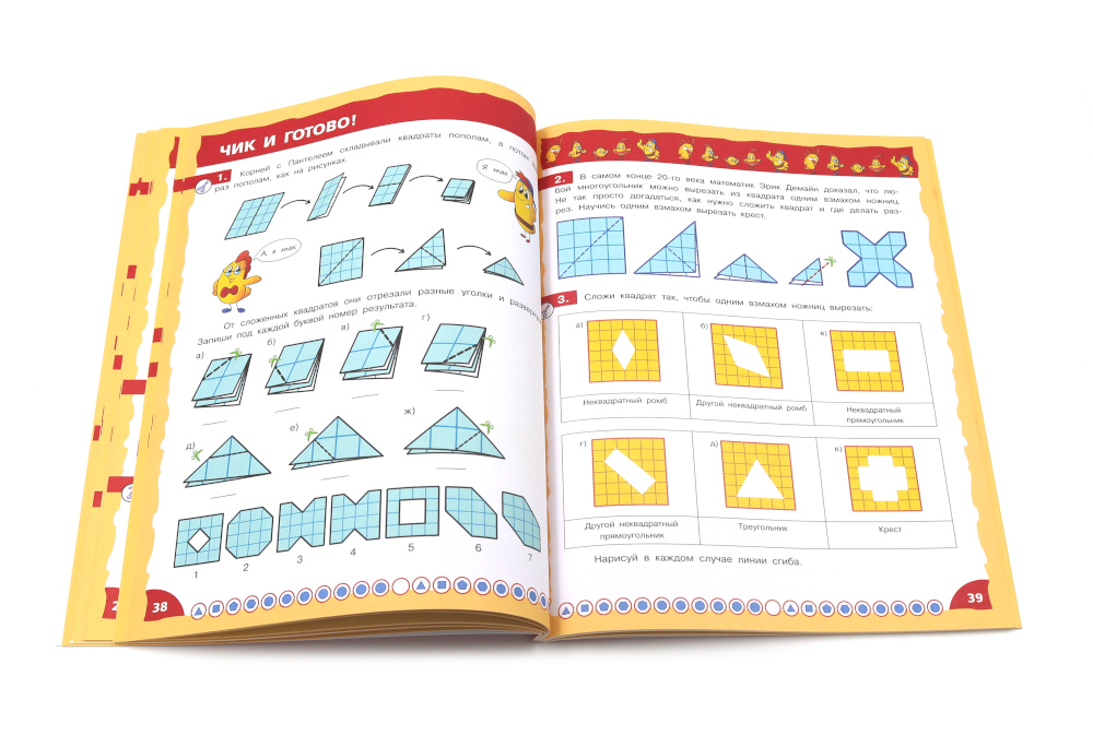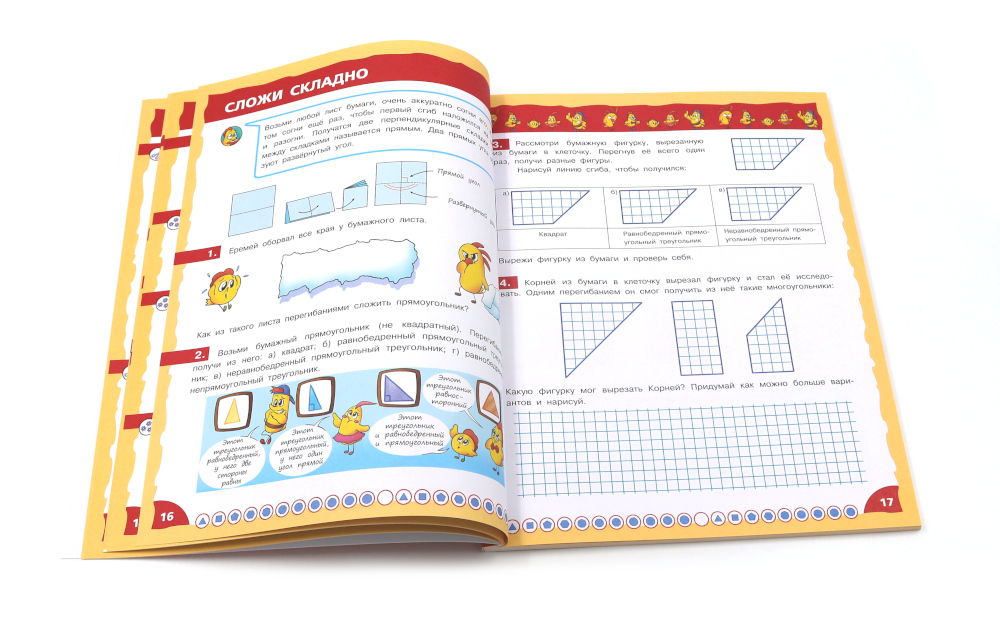 Комплект из 3 книг: «Математика - это интересно. Путешествие по числовому лучу» Книга предназначена для развития креативности, математического мышления и творческой активности у младших школьников. Основная цель данного издания - побудить ребенка к получению знаний, сделать математику интересной, занимательной и доступной наукой. Соответствуя по содержанию программе начальных классов, книга помогает формировать у детей глубокие представления о свойствах числового ряда, чётности чисел, отношений «больше» и «меньше», сложения и вычитания, десятичной записи чисел. Герои книги - весёлые друзья цыплята - не только помогут ребятам быстро включиться в работу, решать математические загадки, но и будут прекрасным примером для формирования правильных представлений о дружбе и позитивных морально-этических качеств. Красочные иллюстрации прекрасно дополняют текст. Издание содержит ответы на задания, что делает его удобным в использовании. Подходит для самостоятельной работы детям младшего школьного возраста, родителям для дополнительных занятий с детьми дома, педагогам в организации уроков в школе. «Математика - это интересно. Эксперименты с листом бумаги» Книга предназначена для развития креативности, математического мышления и творческой активности у младших школьников. Основная цель данного издания - побудить ребенка к получению знаний, сделать математику интересной, занимательной и доступной наукой с самого раннего периода обучения в школе. Для работы понадобятся цветная бумага, бумага в клетку, ножницы, скотч и клей, а ещё карандаш, циркуль и линейка. Конструируя бумажные модели, младшеклассники не просто учатся работать с геометрическими объектами, но и формируют серьезные навыки необходимые для учебы в школе и дальнейшей жизни - планирование, логическое рассуждение, выявление связей между объектами, построение собственных умозаключений и пр. Герои книги - весёлые друзья цыплята - служат хорошим примером для юного читателя: помогают решать задачи, занимаются полезными делами, дружат и поддерживают друг друга. Книга красочно иллюстрирована, содержит ответы на задания. Подходит для самостоятельной работы детям младшего школьного возраста, родителям для дополнительных занятий с детьми дома, педагогам для организации уроков в школе. «Математика - это интересно. Приключения в клеточку» Основная цель пособия - побудить ребенка к получению знаний, развитию креативности, мышления и творческой активности, сделать математику интересной, занимательной и доступной наукой с самого раннего периода обучения в школе. Герои книги - весёлые друзья цыплята - помогут разобраться в вопросах математики. Решая вместе с ними занимательные задачи, дети учатся определять координаты на плоскости, знакомятся со свойствами расстояния и площади, приобретают опыт работы с геометрическими объектами. Выполняя задания, дети развивают математическую интуицию и логическое мышление, вырабатывают умение строить примеры и находить ошибки. Но герои книги не только решают задачи, они занимаются полезными делами, дружат и помогают друг другу, т. е. служат хорошим примером для юного читателя. Книга красочно иллюстрирована, содержит ответы на задания. Подходит для самостоятельной работы детям младшего школьного возраста, родителям для дополнител