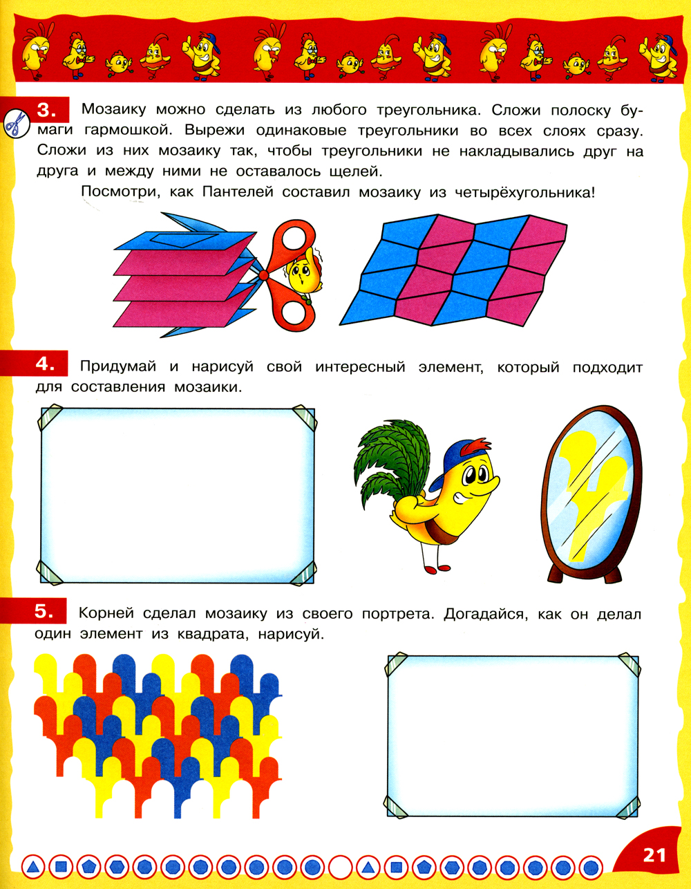 Книга предназначена для развития креативности и математического мышления у младших школьников. Адресована детям, которые знакомы с геометрическими фигурами, понятиями периметра и площади, хорошо умеют читать и работать ножницами. Для работы понадобится цветная бумага, бумага в клетку, ножницы, скотч и клей, а ещё карандаш, циркуль и линейка. Герои книги - весёлые друзья-цыплята - помогут в разгадывании математических загадок. Тетрадь содержит ответы на задания, что делает её удобной в использовании. Поможет педагогам в организации уроков в школе, родителям в занятиях с детьми дома или в период летних каникул. Книга входит в состав учебно-методической системы раннего развития «МИР». Соответствует требованиям Федерального государственного образовательного стандарта начального общего образования (ФГОС НОО).| Издательство | Лаборатория знаний |