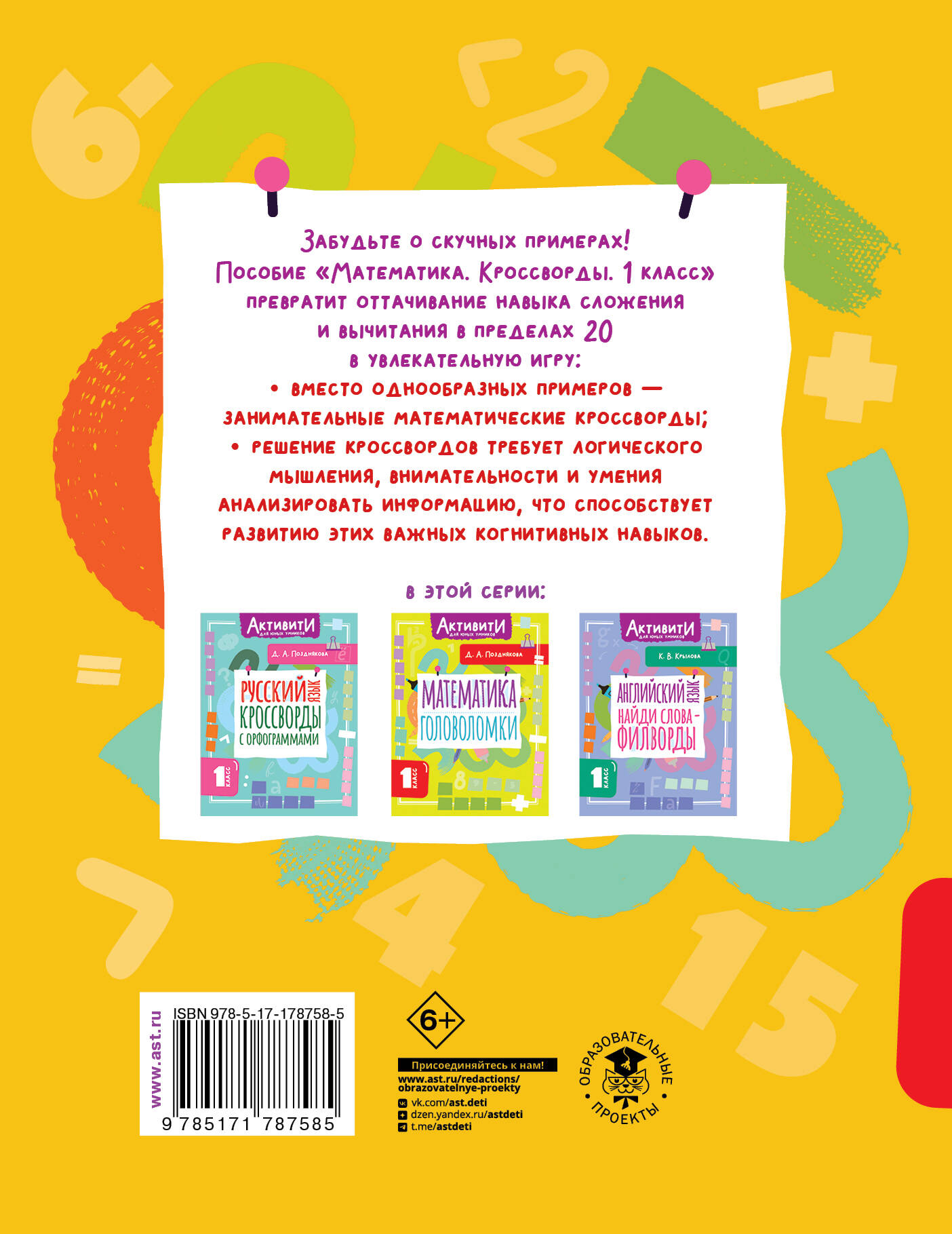 Превратите изучение математики в увлекательное приключение с пособием "Математика. Кроссворды. 1 класс"! Это пособие предлагает юным математикам необычный способ освоения сложения и вычитания в пределах 20 - разгадывать кроссворды! В математических кроссвордах вместо слов используются математические примеры. Решая их, ребёнок не только закрепляет навыки счёта, но и развивает логическое мышление, внимание и память. Яркое оформление и интересные задания превратят учёбу в захватывающую игру.| Издательство | Издательство "АСТ" |