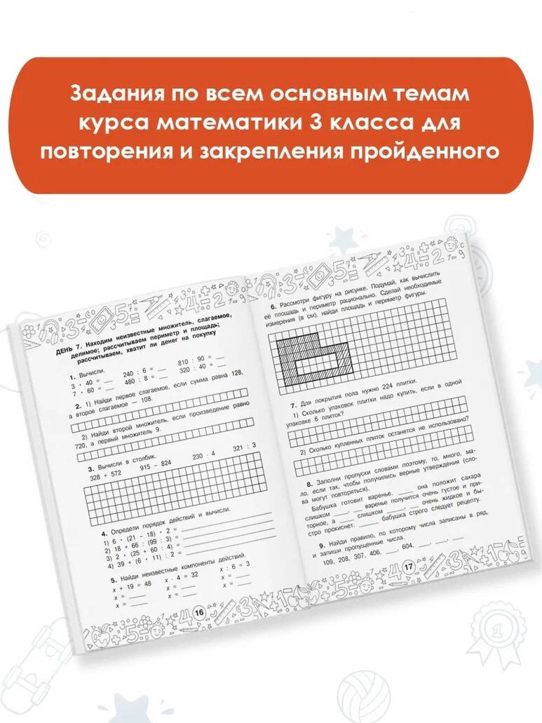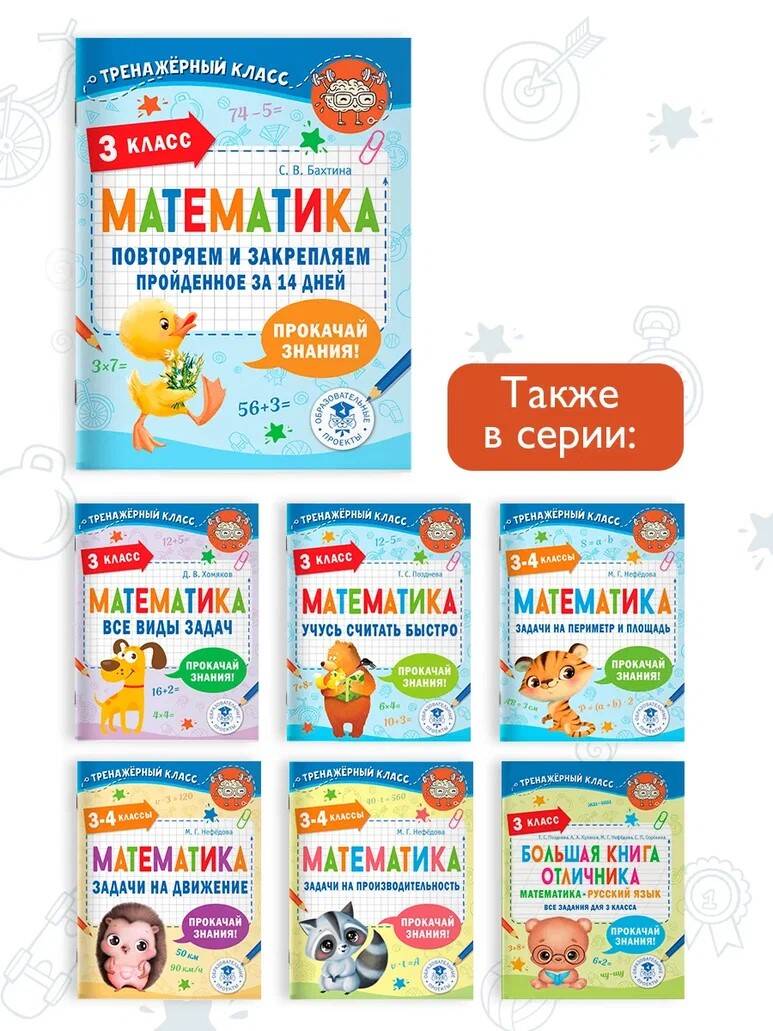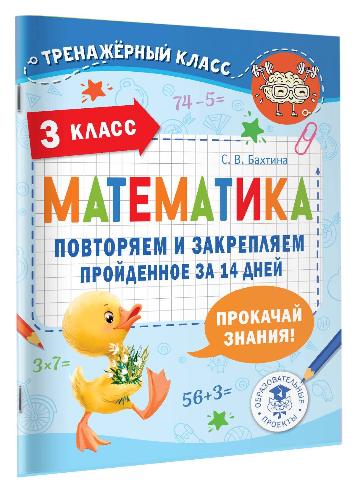 Пособие "Математика. Повторяем и закрепляем пройденное за 14 дней. 3 класс" поможет вашему школьнику быстро и качественно повторить весь школьный курс математики за 3-й класс. В книге представлены все виды заданий по темам: - счёт в пределах 1000 устный и в столбик; - нахождение неизвестных компонентов арифметических действий; - закономерности в ряде чисел и в ряде именованных чисел; - периметр многоугольника, площадь прямоугольника и квадрата; - доли, изображение долей фигур, нахождение доли величины; - решение текстовых задач и простейших задач на оценку результата; - работа с таблицами и столбчатыми диаграммами. Занятия по пособию могут быть организованы дома и в школе в конце текущего, в начале следующего учебного года, а также в период летних каникул.| Издательство | ИЗДАТЕЛЬСТВО "АСТ" |