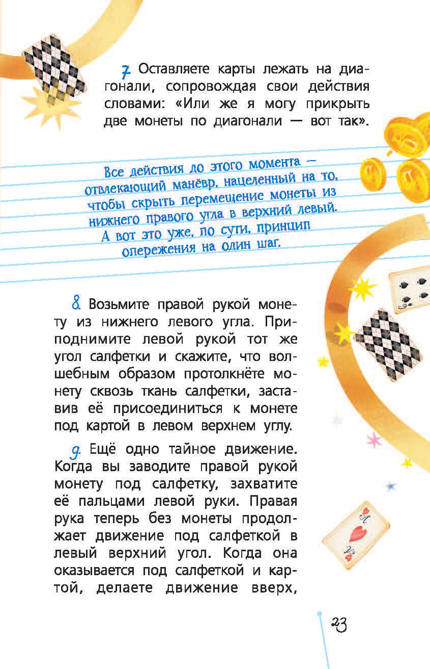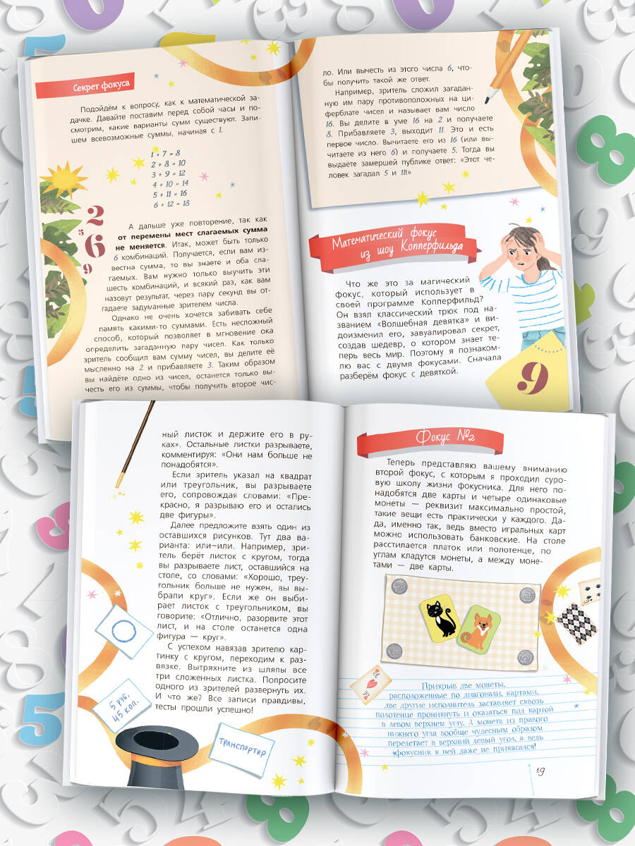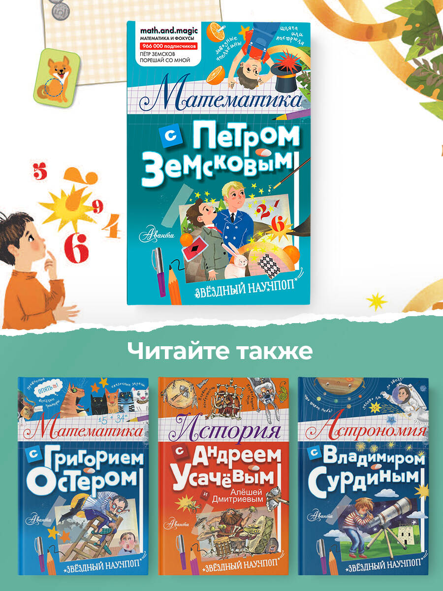 Мечтаете, чтобы ваш ребёнок искренне полюбил математику и с удовольствием ходил на уроки? Тогда эта книга идеально подходит вашей семье. В ней описана уникальная методика изучения математических законов при помощи фокусов и трюков. Её разработал учитель математики и суперуспешный YouTube и TikTok блогер Пётр Земсков, за которым следят миллионы зрителей. На своём просветительском канале с миллионом подписчиков Пётр разбирает необычные решения известных математических задач, которые пригодятся любому школьнику. Его задачник разошёлся многотысячными тиражами менее, чем за полгода. В новой книге Пётр Земсков представляет всем неравнодушным к чудесам школьникам и их родителям свой неповторимый способ полного погружения в мир математики. В его основе лежит научная магия математической иллюзии. С её помощью можно не только стать отличником, но и создать своё собственное математическое шоу. Внутри вы найдёте подробные рецепты математических фокусов, трюков и иллюзий, переплетающиеся с невероятными рассказами о волшебниках всего мира.| Издательство | АСТ |