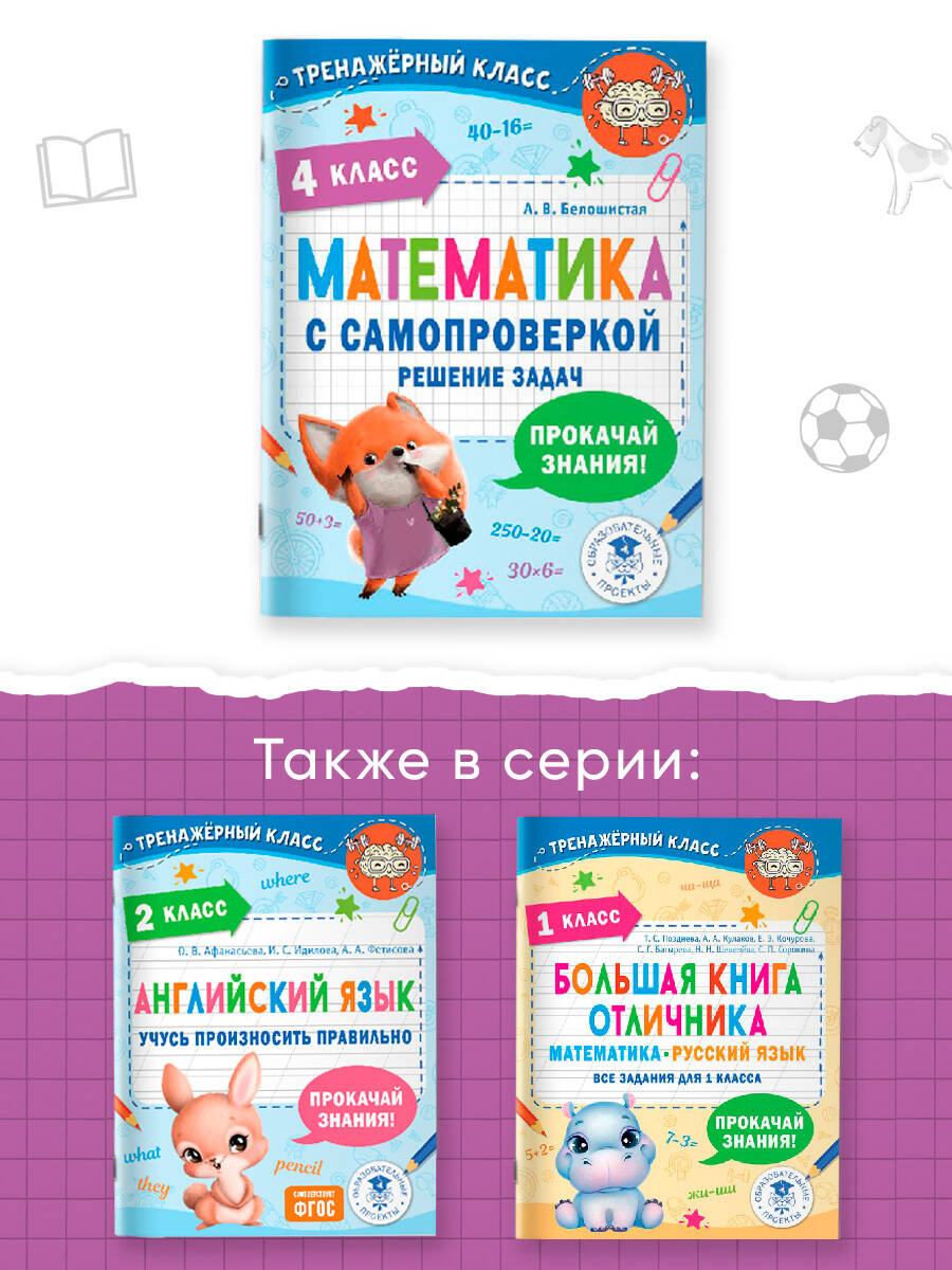 Задачи - это важнейшее средство формирования математических знаний младших школьников, одна из основных форм учебной деятельности в процессе изучения математики. В пособии "Математика с самопроверкой. Решение задач" рассмотрены все виды решения задач, которые ребенок встретит в учебниках 4 класса, а также - большое количество нестандартных задач и задач повышенной сложности. Книгу можно использовать как в индивидуальной домашней работе с ребенком, так и в школе на уроках математики, для подготовки к ВПР по математике, на занятиях кружка или факультатива.| Издательство | Издательство "АСТ" |