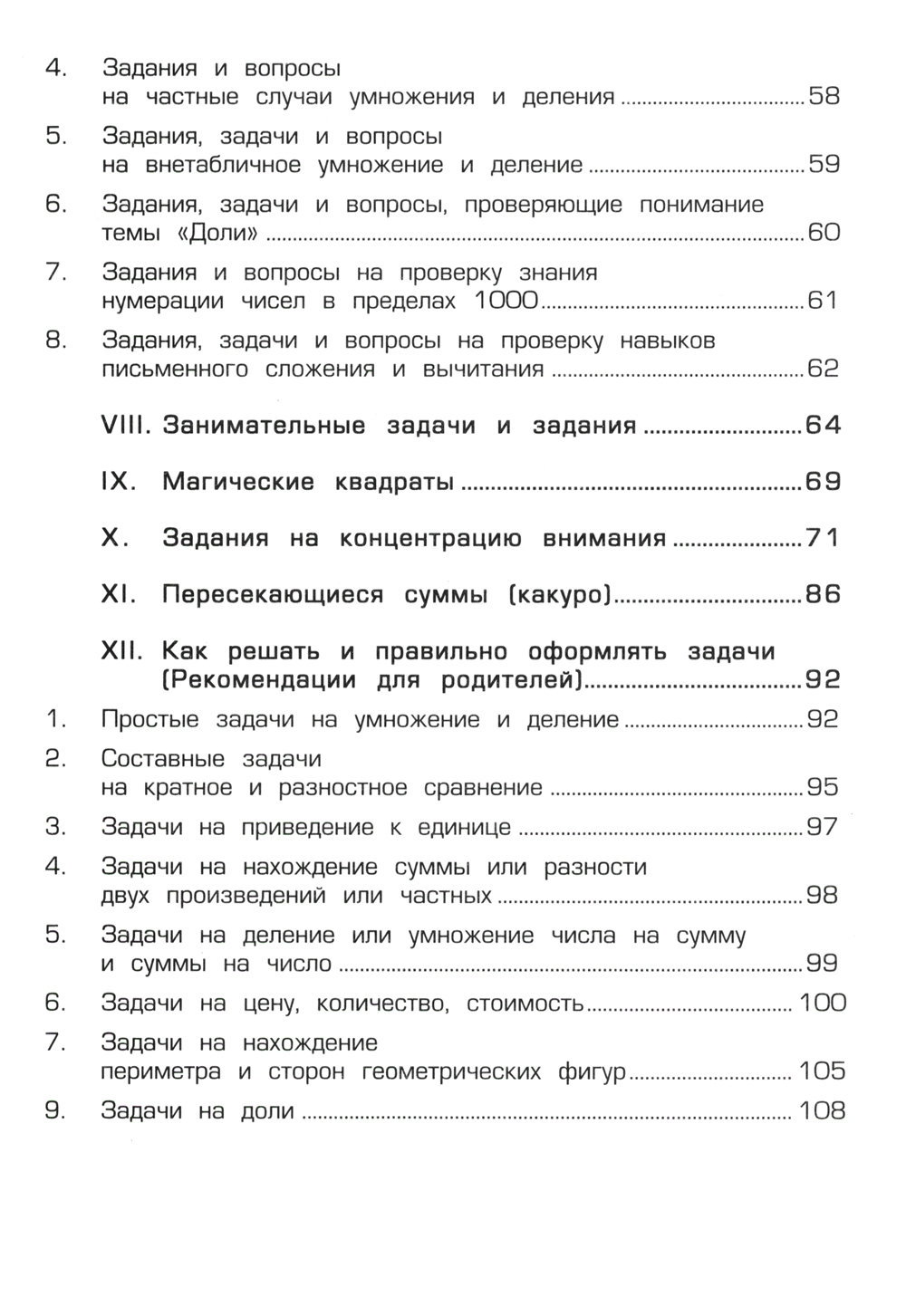 Цель учебного комплекта, в который входит этот сборник, дать учителям и родителям разнообразный материал для отработки всех типов задач, примеров, уравнений и преобразований. В комплект также входят сборники самостоятельных работ: «Реши задачу!», «Попробуй реши!» (примеры, уравнения, неравенства, преобразования), «Проверим знание таблицы умножения!», а также сборник «Устный счёт в начальных классах», в котором даны методические рекомендации по развитию навыков устного счёта, контрольные работы по устному счёту (по две на каждый месяц) и множество задач и примеров. В конце сборника даны обобщающие и систематизирующие знания теоретические вопросы, задачи и тестовые задания по всем темам, изучаемым в 1-3 классах.| Издательство | Грамотей |