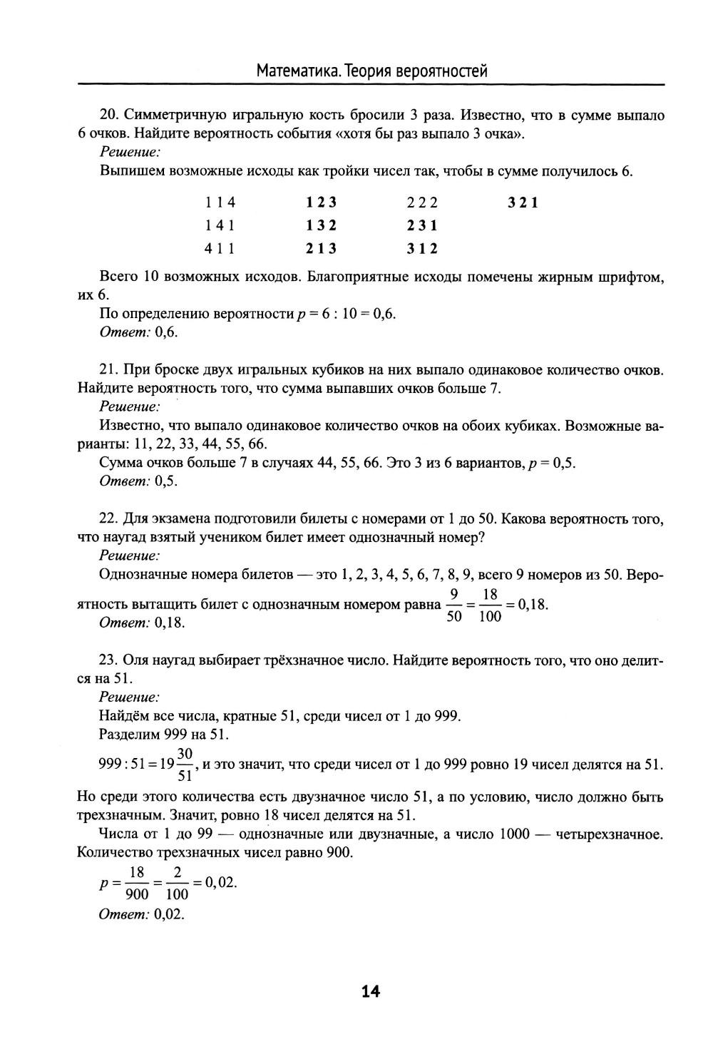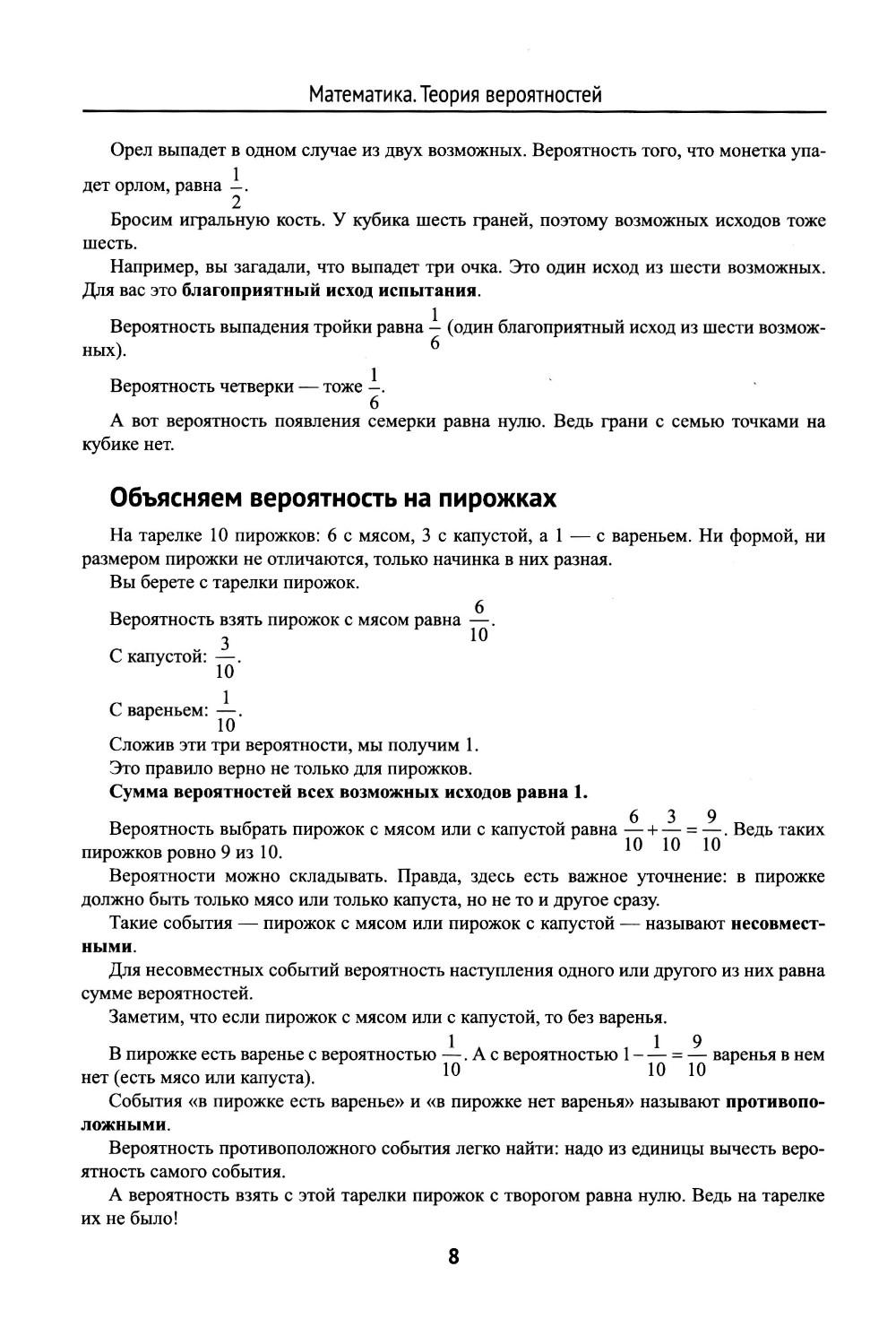 В этой книге - вся школьная теория вероятностей. Все задачи по этой теме, какие только могут быть на ЕГЭ, с подробными решениями и ответами. От определения вероятности - до условной вероятности, комбинаторики и формулы Бернулли, математического ожидания и дисперсии. Книга написана просто и понятно. Учителя найдут в ней методику преподавания теории вероятностей, а также новые подборки задач с веселыми сюжетами. Большая их часть - авторские задачи Анны Малковой. С них начинается каждая глава, а затем автор переходит к стандартным заданиям ФИЛИ и разбирает все прототипы ЕГЭ. Специально для этой книги собрана «Золотая коллекция» - подборка самых интересных и неожиданных задач. Они помогут вам лучше понять теорию вероятностей и сдать ЕГЭ на высший балл.| Издательство | Феникс |