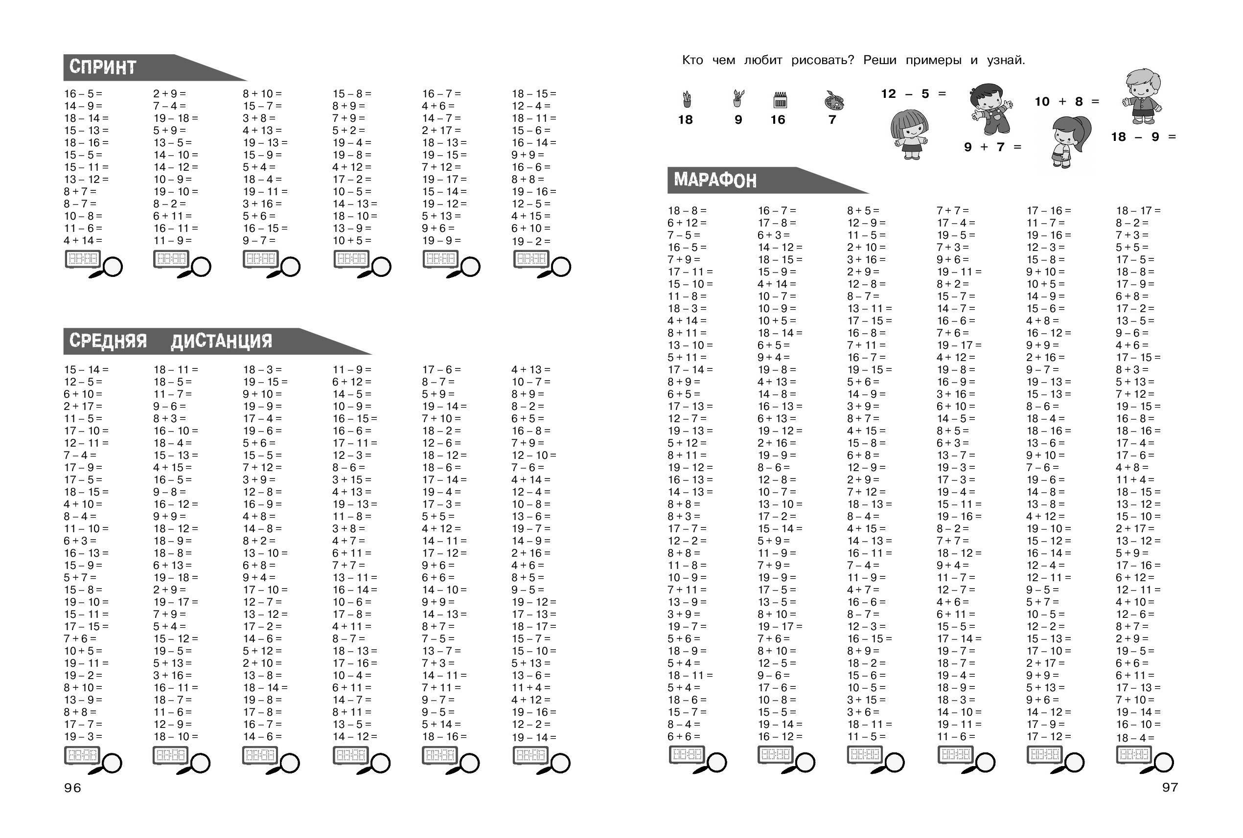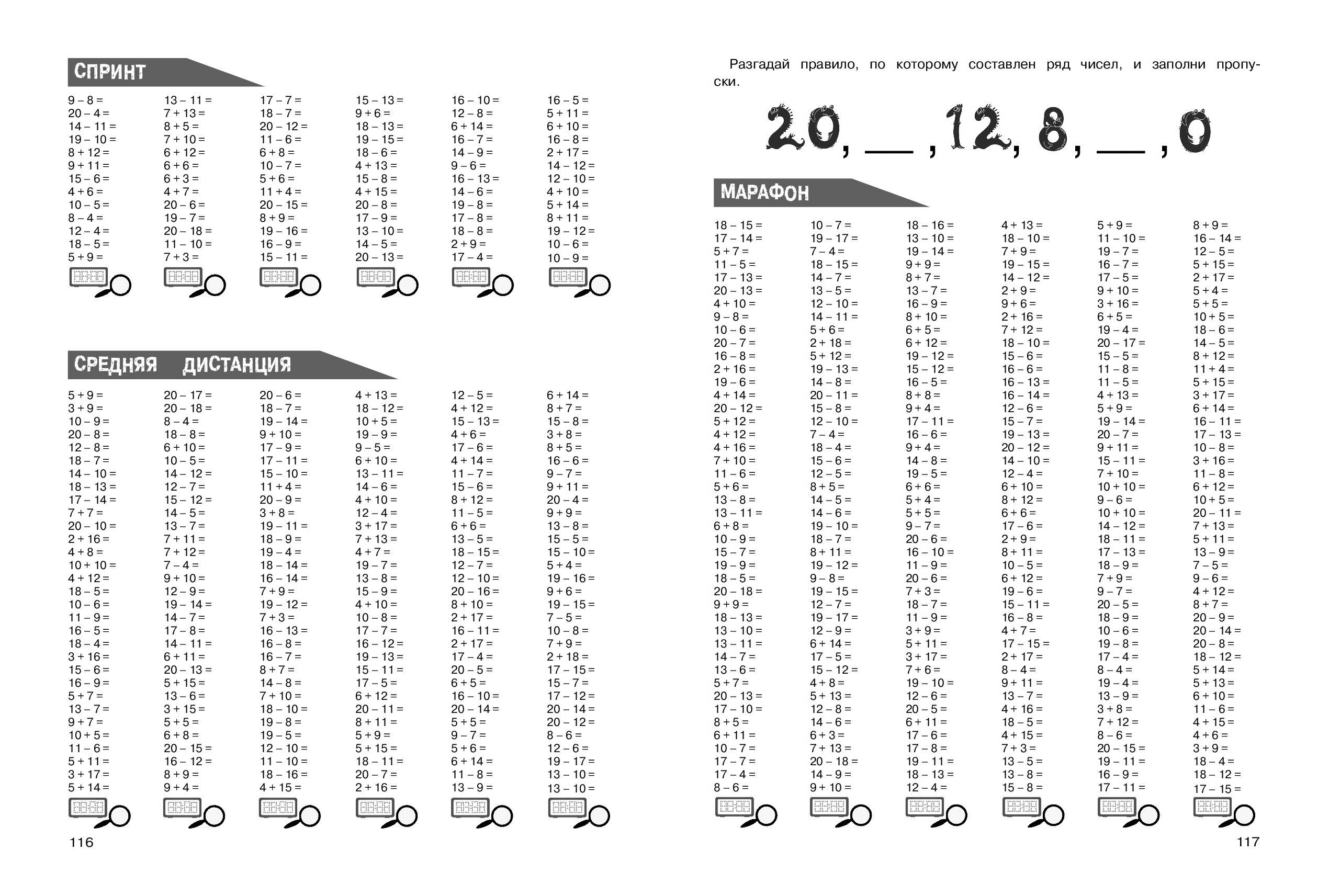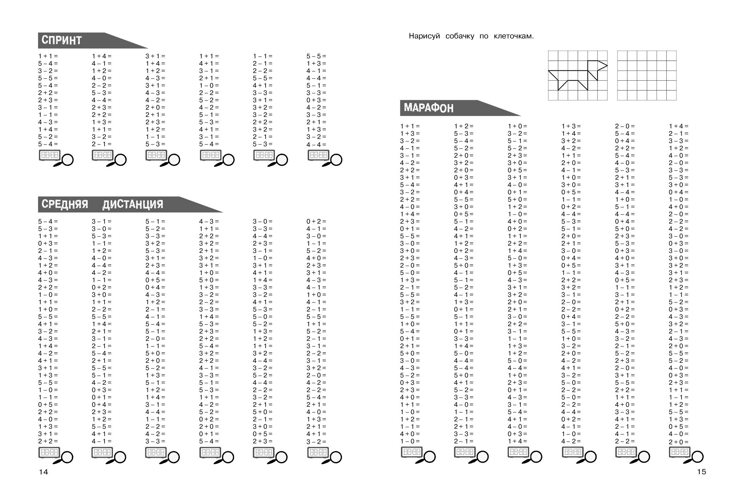 Научиться мгновенно считать в уме, не делая при этом ошибок, может любой школьник. Для этого нужно систематически и в большом объёме выполнять задания на каждое математическое действие. В этом тренажёре ученику предлагается решить 30 000 примеров по всем темам программы по математике за курс 1 класса. Выполнив такое количество примеров, школьник надёжно закрепит полученные знания и доведёт навык устного счёта до полного автоматизма. Благодаря регулярной работе с тренажёром первоклассник сможет оценить уровень своих знаний и заметно его повысить.| Издательство | ООО "Издательство "Эксмо" |