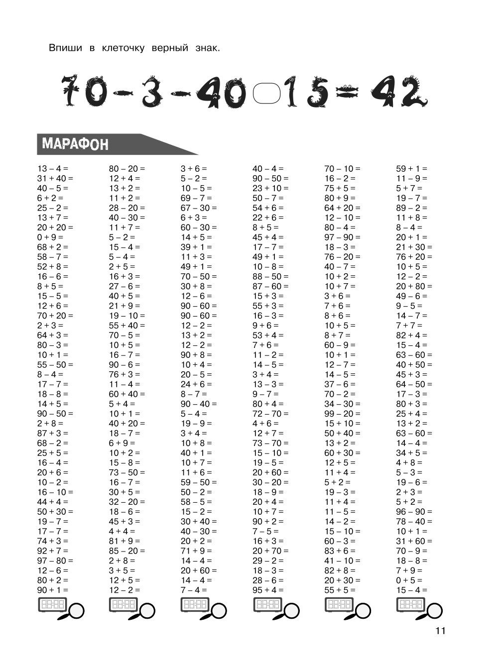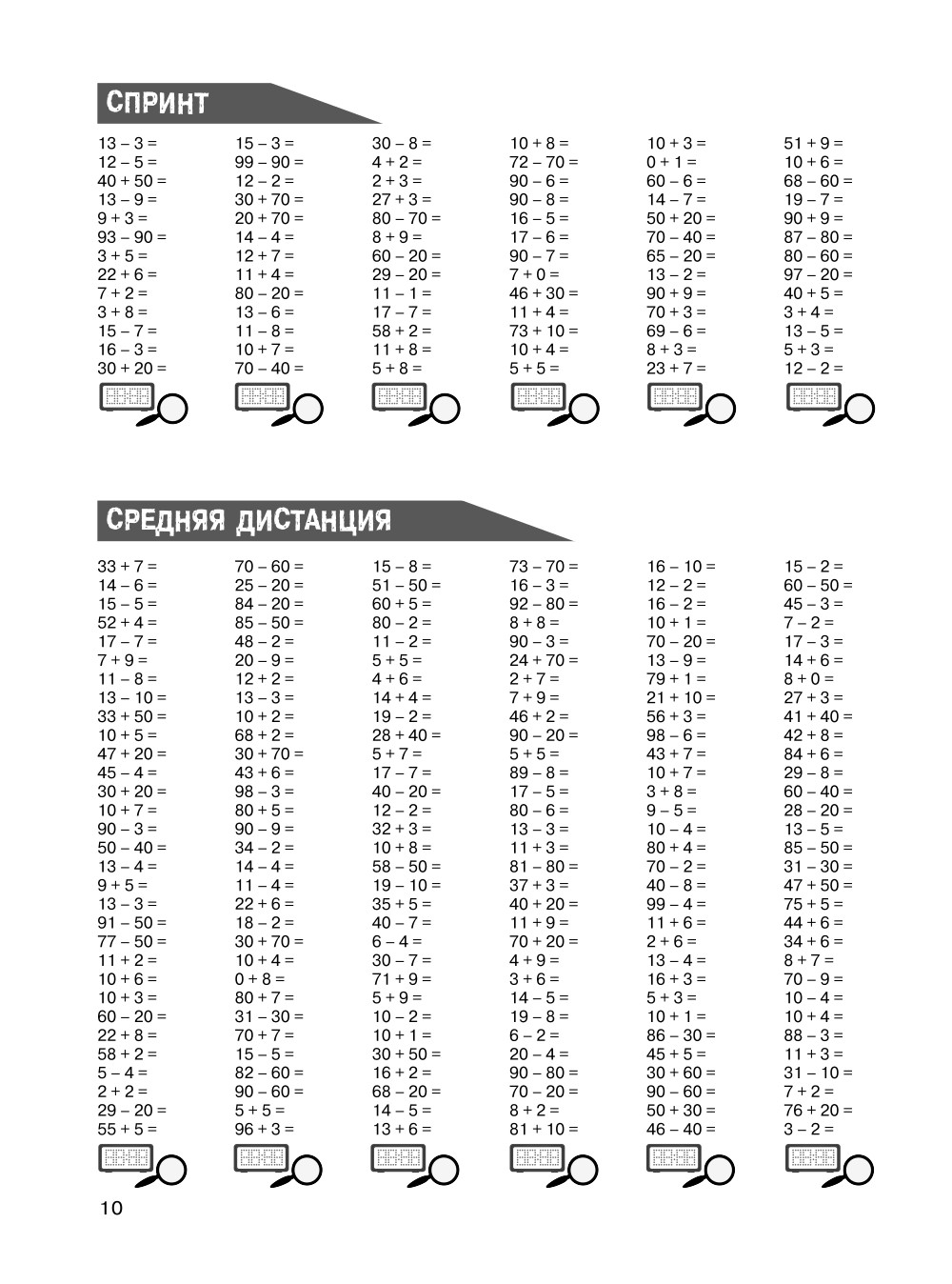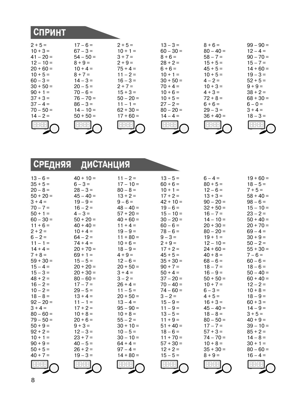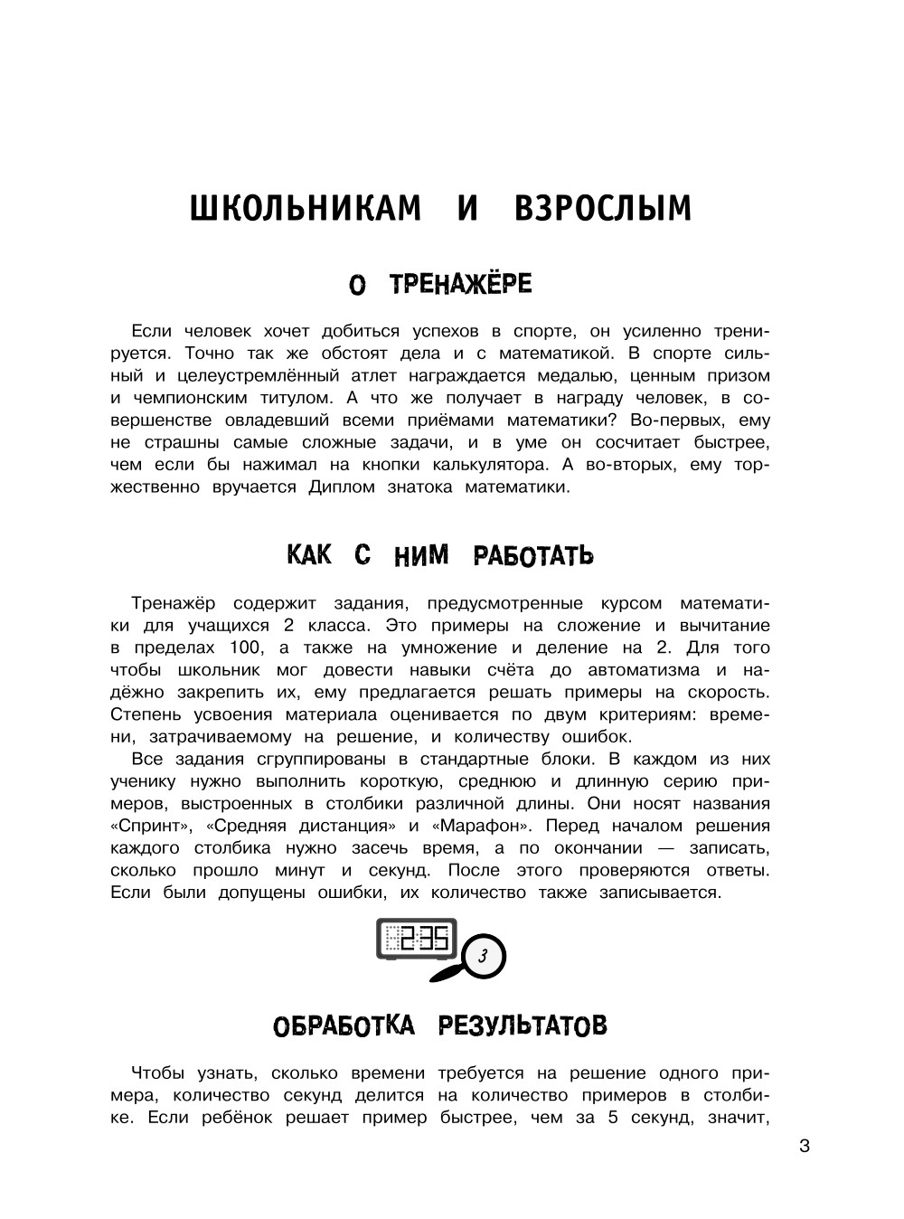 Научиться мгновенно считать в уме, не делая при этом ошибок, может любой школьник. Для этого нужно систематически и в большом объёме выполнять задания на каждое математическое действие. В этом тренажёре ученику предлагается решить 30 000 примеров по всем темам программы по математике за курс 2 класса. Выполнив такое количество примеров, школьник надёжно закрепит полученные знания и доведёт навык устного счёта до полного автоматизма. Благодаря регулярной работе с тренажёром второклассник сможет оценить уровень своих знаний и заметно его повысить.| Издательство | Эксмо |