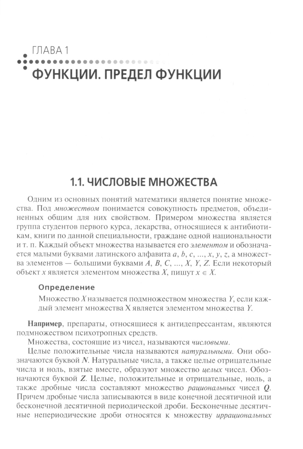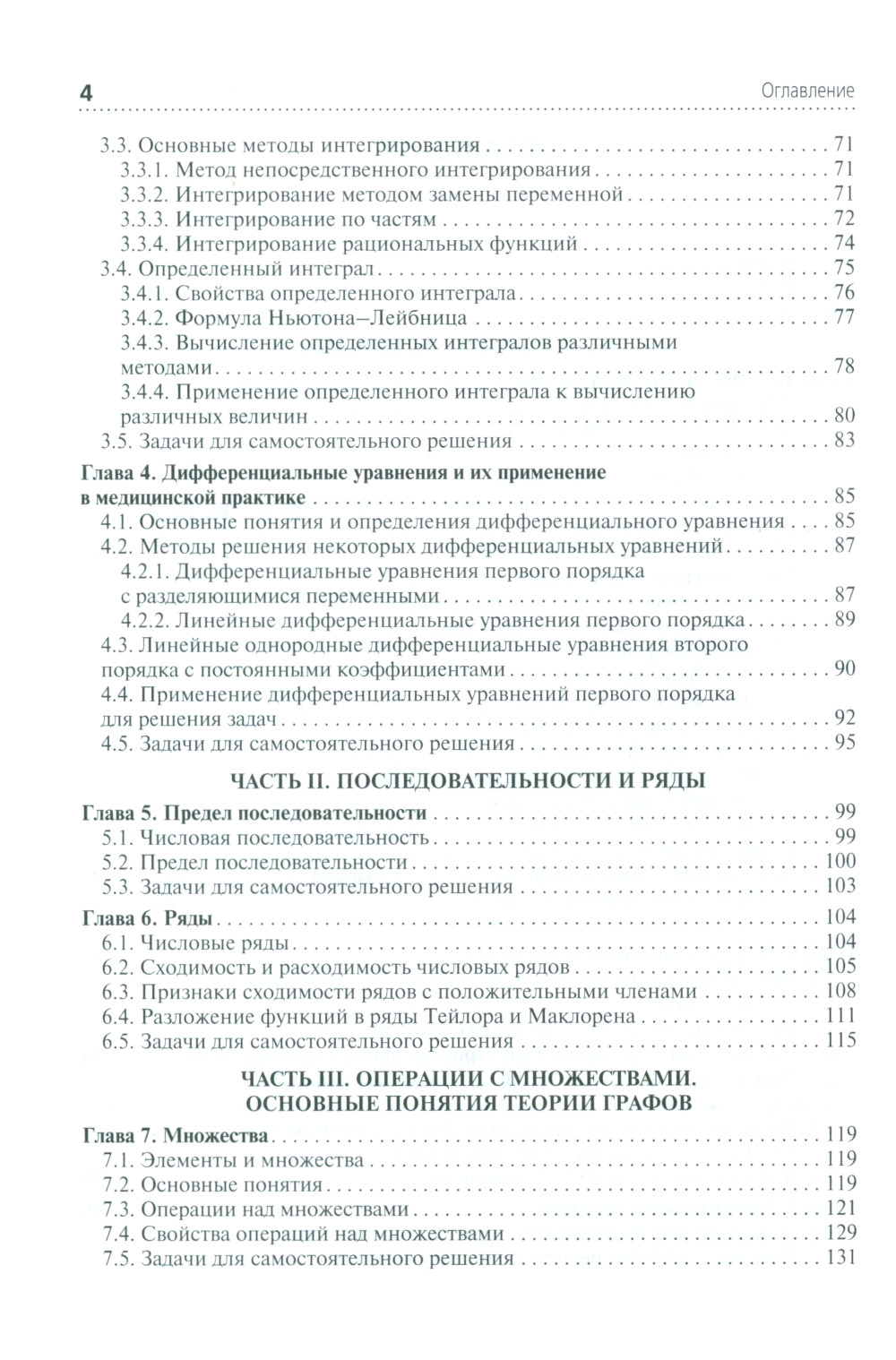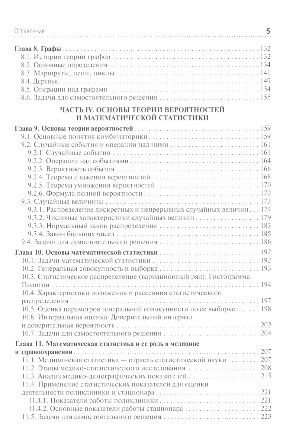 В учебнике изложены вопросы математического анализа, теории множеств, графов, последовательностей и рядов, а также теории вероятностей и математической статистики. В последней главе приведены прикладные задачи, часто встречающиеся в профессиональной деятельности среднего медицинского пер сонала. Содержание учебника соответствует примерной программе учебной дисциплины "Математика", разработанной на основе новых федеральных государственных образовательных стандартов по всем специальностям среднего профессионального медицинского образования. Учебник предназначен студентам медицинских и фармацевтических училищ и колледжей, а также может быть полезен студентам медицинских вузов.| Издательство | ГЭОТАР-Медиа |
