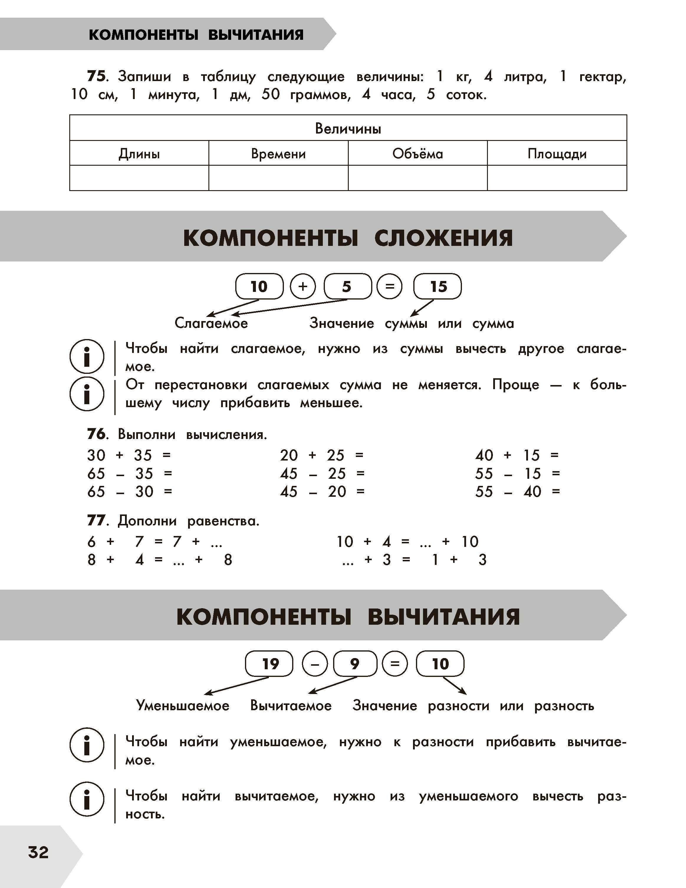 Хотите помочь ребёнку лучше учиться и систематизировать свои знания? Это пособие содержит все правила курса математики для первого класса в виде схем и таблиц и задания для их прочного закрепления. В последнем разделе приведены тесты по всем темам курса и ответы к ним. Пособие составлено экспертами детского образования, которым доверяют миллионы - О.В. Узоровой и Е.А. Нефёдовой. С этим пособием первоклассник быстро освоит алгоритмы счёта и решения типовых задач, научится извлекать информацию из схем и таблиц и, наоборот, представлять информацию в виде схем и таблиц. Ребёнок сможет разложить по полочкам полученные знания, систематизировать их и связать между собой. Помогите ребёнку ходить в школу с радостью!