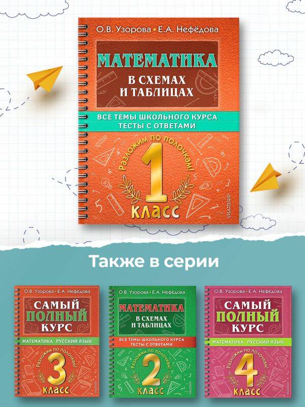 Аннотация: Математика в схемах и таблицах. Все темы школьного курса 1 класса с тестами.