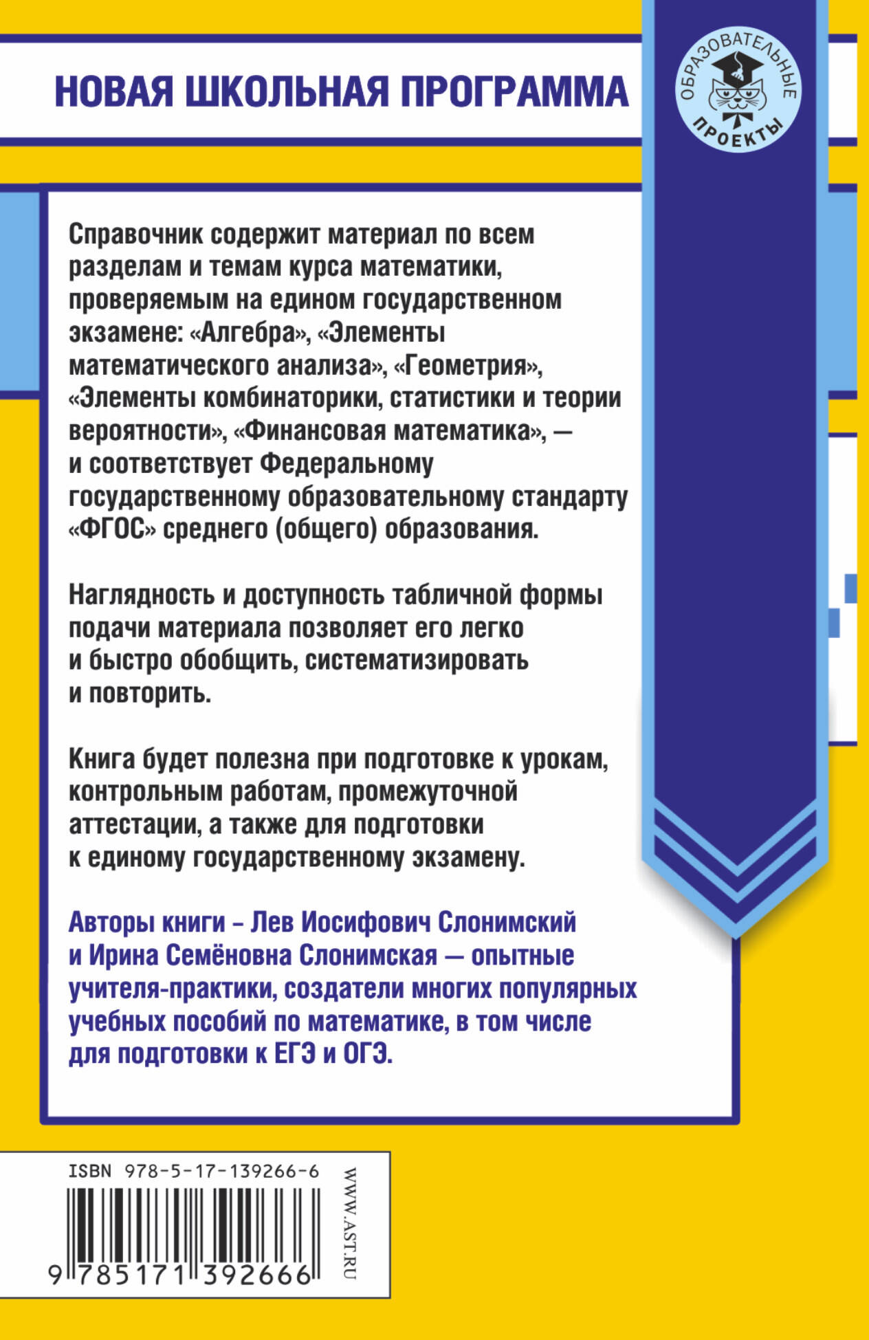 В справочнике в виде схематических таблиц представлены все необходимые материалы для подготовки к итоговой аттестации в 9 классе. Разделы справочника соответствуют кодификатору основного государственного экзамена по математике. Книга будет полезна для повторения и обобщения математических знаний при подготовке к урокам, контрольным и проверочным работам, экзамену в формате ОГЭ.| Издательство | АСТ |