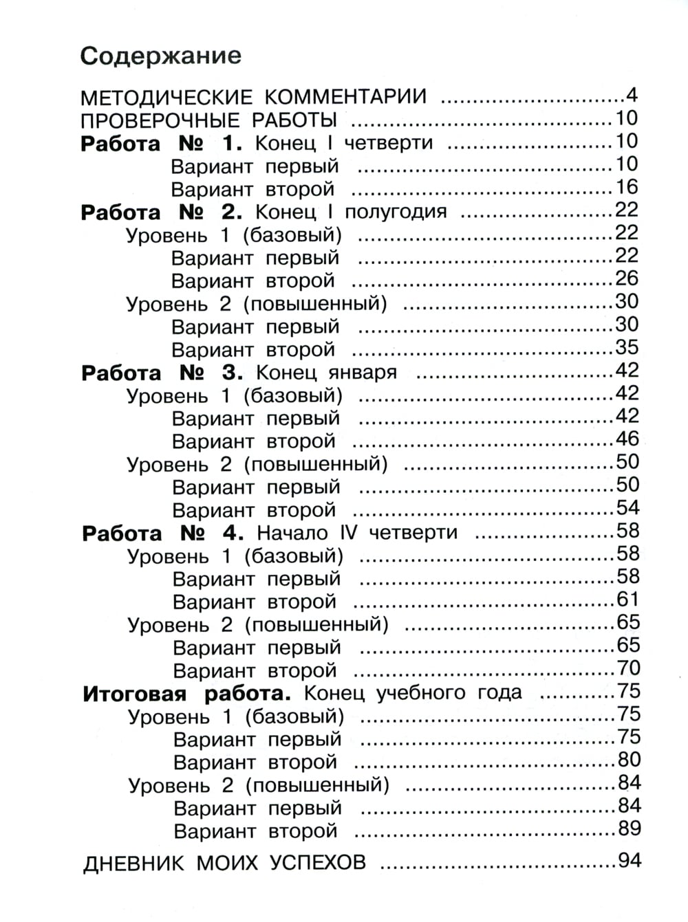 Пособие поможет учителю и родителям проверить образовательные достижения учеников 1-го класса по математике в соответствии с новым ФГОС начального общего образования. В тетради представлен уровневый подход к организации проверочных работ по математике, что позволяет включить вариативные учебные задания в процедуру контроля математических успехов первоклассников. Каждая из работ предлагается в двух вариантах. Вторая и следующие работы содержат задания первого (базового) и второго (повышенного) уровней. Пособие содержит доступную систему самооценивания и оценивания. Достижения учащихся фиксируются в Дневнике моих успехов. Пособие можно использовать с любыми учебниками, поскольку содержание работ соответствует примерной рабочей программе по математике, одобренной решением федерального учебно-методического объединения по общему образованию, протокол 3/21 от 27.09.2021.| Издательство | Вита-Пресс |