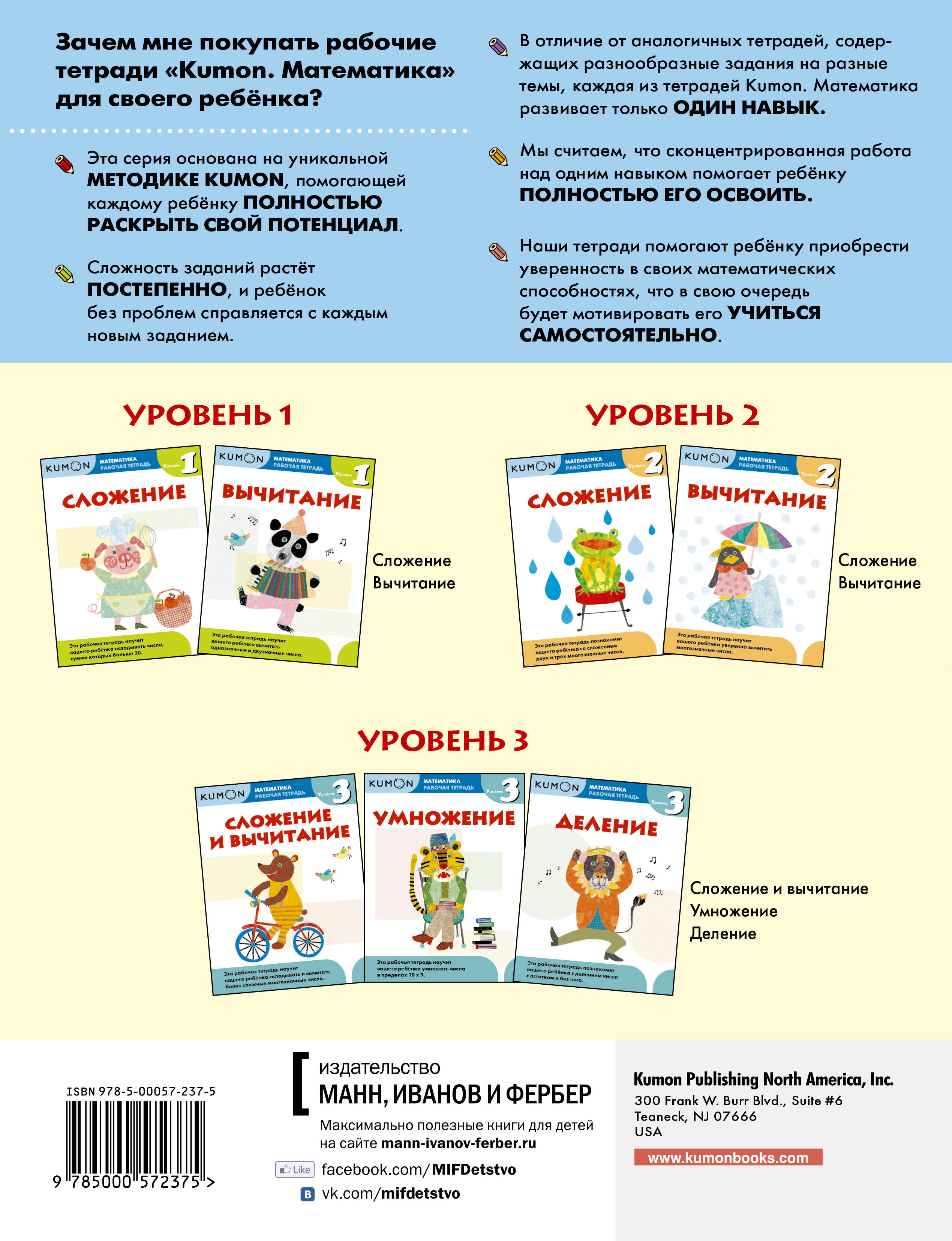 Рабочая тетрадь Kumon. Математика поможет вашему ребёнку шаг за шагом освоить определённый математический навык, а логическое развитие и повторение материала помогают его прочному усвоению.