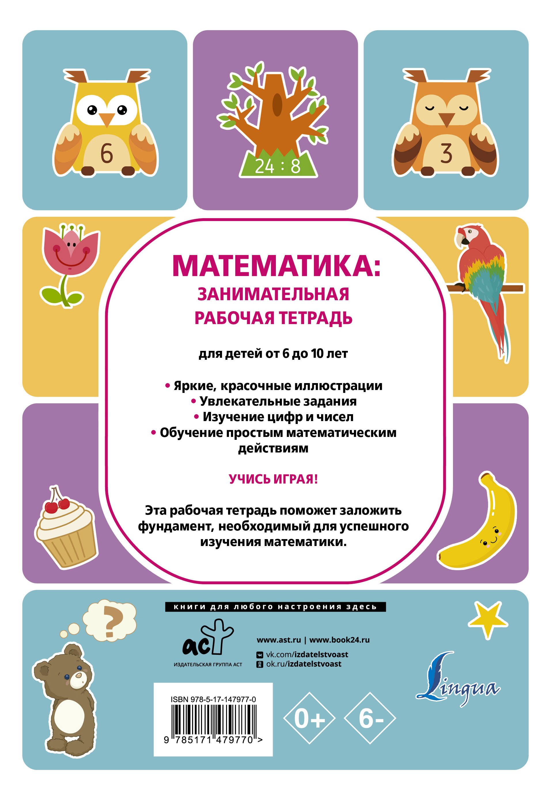 Издание представляет собой рабочую тетрадь для обучения детей математике и состоит из 19 уроков с разнообразными заданиями. Разделение на уроки позволит не перегружать ребёнка и поддерживать его интерес к обучению. Первая часть - изучение цифр. На каждую цифру даны прописи, кроме того, стрелочками показано направление письма. Во второй части даются числа от 11 до 20. Третья часть посвящена математическим знакам и простым математическим действиям (сложение, вычитание, умножение, деление), которые изучают в начальной школе. Задания позволяют закрепить знания на практике, а также тренируют умственную активность, формируют логическое мышление и развивают мелкую моторику. Упражнения и головоломки разнообразят учебный процесс и станут приятной и полезной игрой для детей. Ваш ребёнок с нетерпением будет ждать следующего занятия. Благодаря ярким иллюстрациям и весёлым заданиям ребёнок не будет скучать во время занятий и будет учиться с удовольствием. Данное пособие предназначено для занятий с детьми, начинающими изучать математику, ориентировано на дошкольный и младший школьный возраст.| Издательство | АСТ |