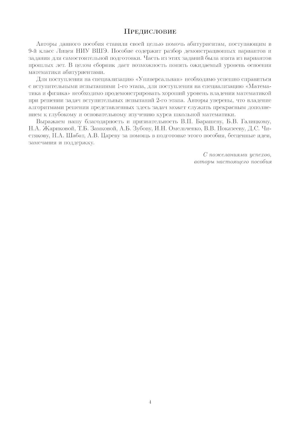 Аннотация: Материалы для подготовки к вступительным экзаменам по Математике в 9-й класс Лицея НИУ ВШЭ. 2-изд