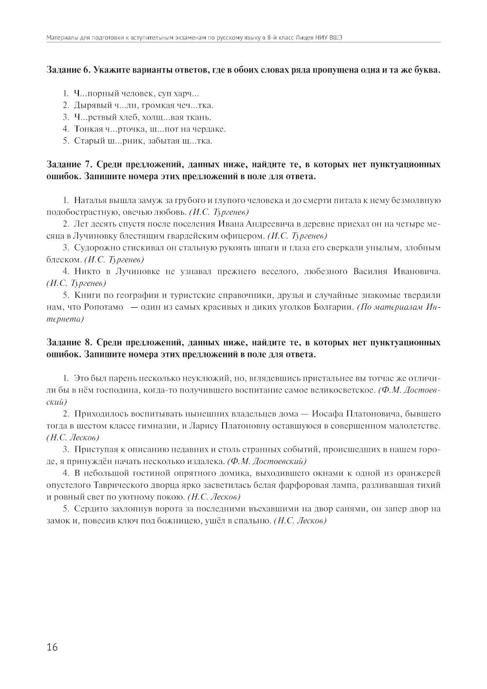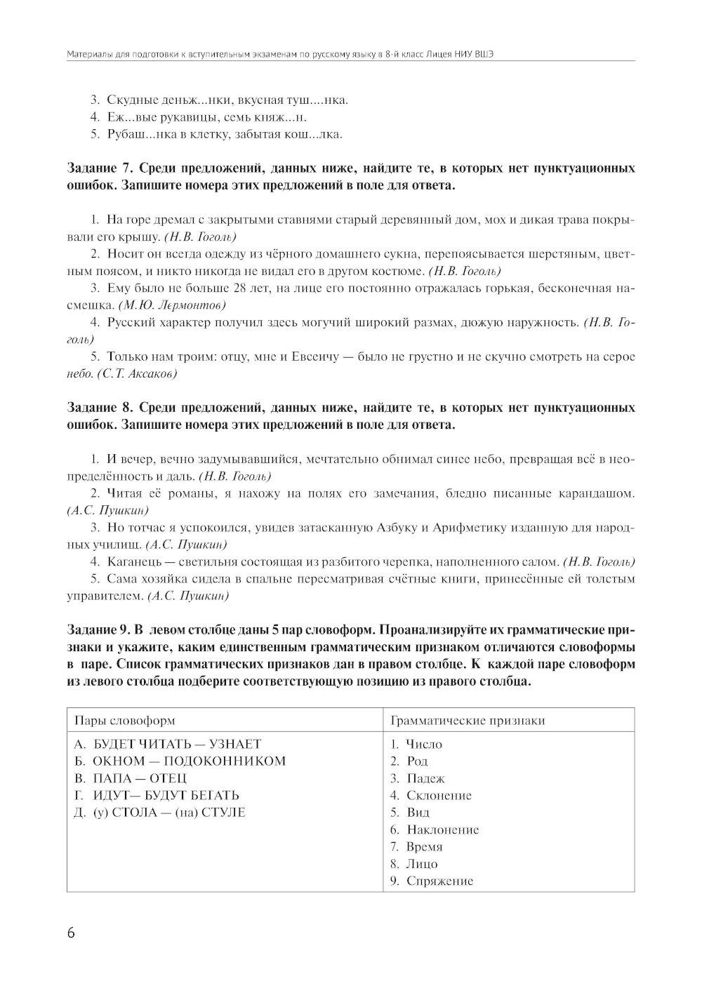 Материалы для подготовки к вступительным экзаменам по Русскому языку в 8-й класс Лицея НИУ ВШЭ: учебное пособие