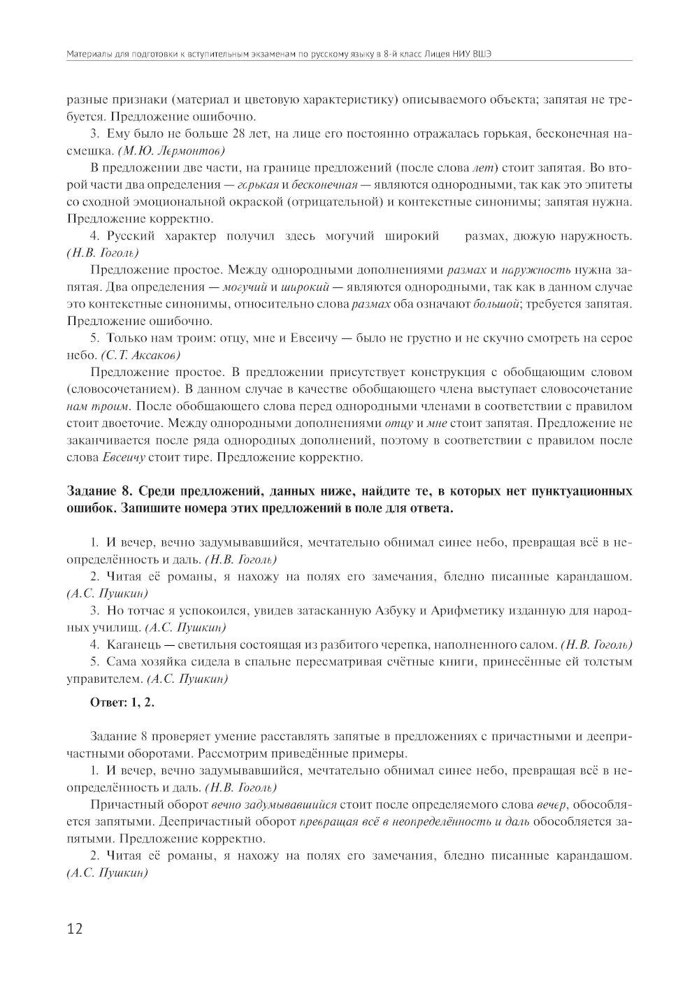 Аннотация: Материалы для подготовки к вступительным экзаменам по Русскому языку в 8-й класс Лицея НИУ ВШЭ: учебное пособие