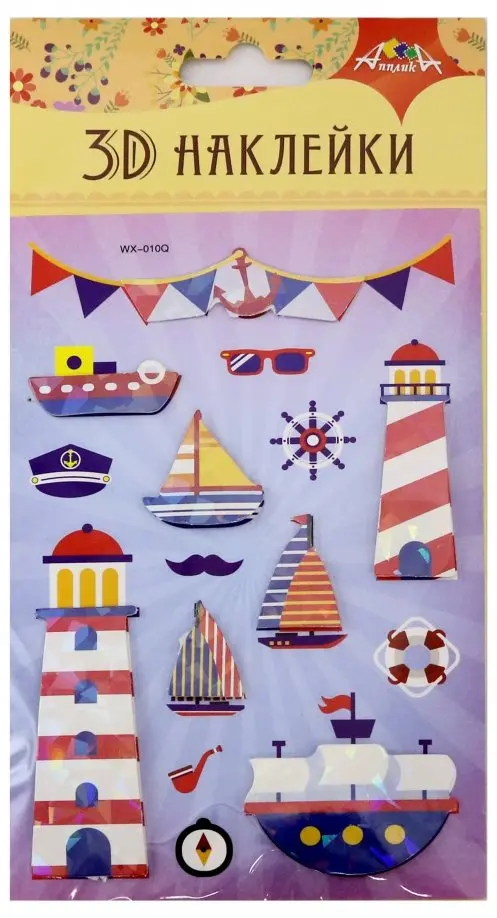 Материал для творчества. 3D Наклейки (детские). В наборе объемные - многослойные наклейки из бумаги. Оригинальные наклейки с 3D-эффектом украсят любую поделку, тетрадь или дневник . Легко отделяются от основы и надежно приклеиваются. Упаковка - ПЭТ пакет с картонным вкладышем и европодвесом.