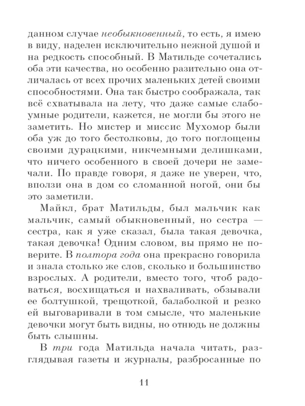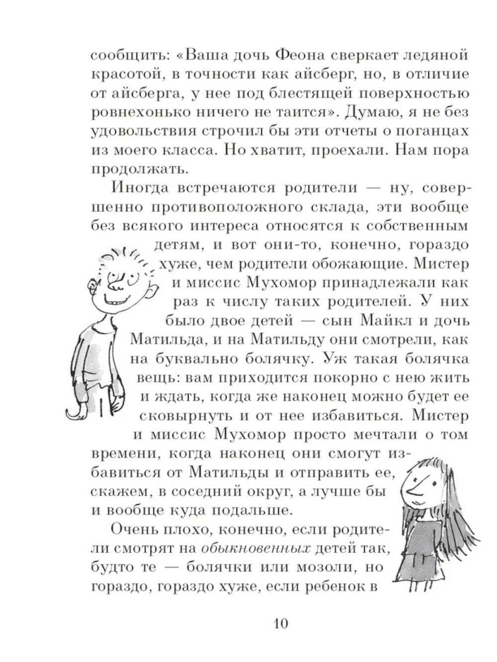 Комплект из 2 книг. Даль Роальд «Матильда»: Матильда маленькая и очень умненькая девочка. Очень-очень умненькая. Она сама научилась читать в три года и больше всего на свете любит книги. И не какие-нибудь там детские сказочки, а Диккенса, Хэмингуэя, Стейнбека и Киплинга. Но, к несчастью, это совсем не по вкусу ее родителям, двум довольно неприятным личностям, которые бы предпочли, чтобы она смотрела, как и они, дурацкие передачи по телевизору. И в школе маленькую Матильду ждут неприятности, потому что директриса заведения ненавидит детей и жестоко мучит их. Но к счастью, учительница Матильды невероятно добра к ней и внимательна. К тому же Матильда внезапно открывает в себе сверхъестественные способности... Парр Мария «Тоня Глиммердал»: Тоня - единственный ребенок в норвежской горной деревушке неподалеку от моря. У нее есть снегокат, лыжи, большая семья, собирающаяся вместе только по праздникам и горы, и пастбища, и речка - все вокруг ее. Когда она летит на лыжах, распевая во весь голос и сверкая рыжей копной волос, вся деревня знает, что едет самый главный человек в долине. Лучший друг Тони - старик Гунвальд, который печет для нее кексы и играет на скрипке. Но жизнь Тони не всегда беззаботна и полна веселья. Наоборот, хлопот у нее хватает. Во-первых, в округе ни одного ребенка, а Тоне так хочется найти друзей-сверстников. Во-вторых, новый владелец туристического кемпинга не пускает детей к себе - от них слишком много шума, а его постояльцы ценят тишину и покой. Но если Тоня что-то решила, то от своего не отступится. Ведь главное в жизни - «скорость и самоуважение»!| Издательство | Самокат |