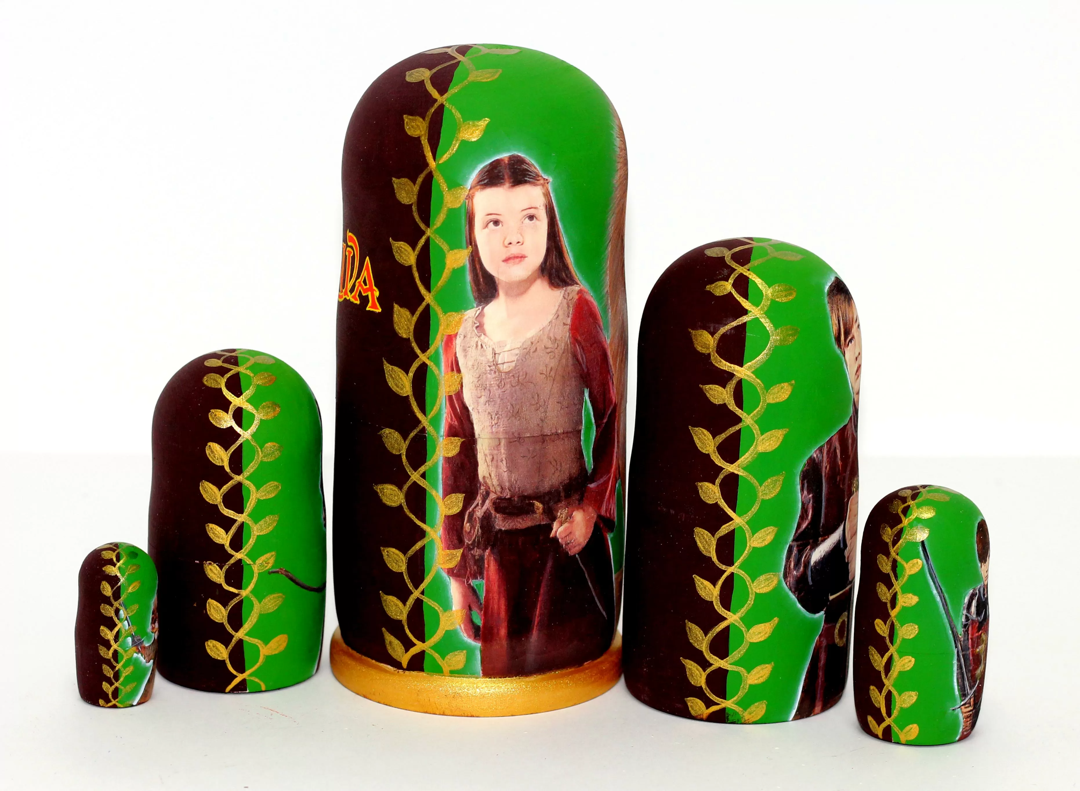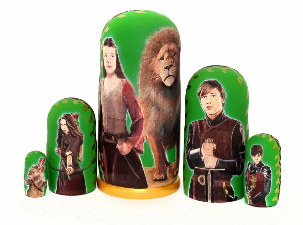Мы чутки к запросам наших клиентов. Именно поэтому в нашем каталоге появился большой выбор матрешек с изображением актеров и других знаменитостей. Эта пятиместная матрешка - специально для фанатов фильма «Хроники Нарнии». Найдите свои любимые фильмы в нашем каталоге. Заказ оформляйте через сайт, мы гарантируем доставку.| ISBN | 05025 |