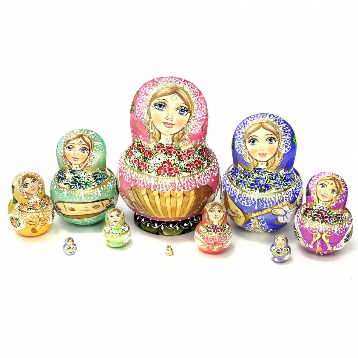 Десятиместная матрешка с куклами, играющими на русских народных музыкальных инструментах. Подойдет в качества подарка музыканту или ценителю русских мотивов. Заказать оригинальный сувенир можно напрямую на фабрике матрешек, воспользовавшись личным кабинетом на сайте. У нас есть доставка по всей России.| Серия | 05. ПАЗЛЫ 3D (Prime 3D) (Рыжий Кот) |