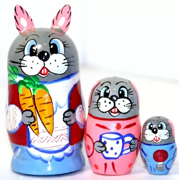 Матрешка-зайка очень напоминает мультипликационного персонажа, у которого "Четыре сыночка и лапочка дочка". Как и другие наши игрушки с детскими узнаваемыми рисунками, сувенир подойдет для игры с малышами. Вы можете придумывать с ними свои сюжеты или собрать коллекцию мультяшных игрушек. Другие варианты, к примеру, Чебурашка с крокодилом Геной, есть в нашем каталоге. Можете воспользоваться строкой поиска. Заказ выполняем в короткие сроки с доставкой.