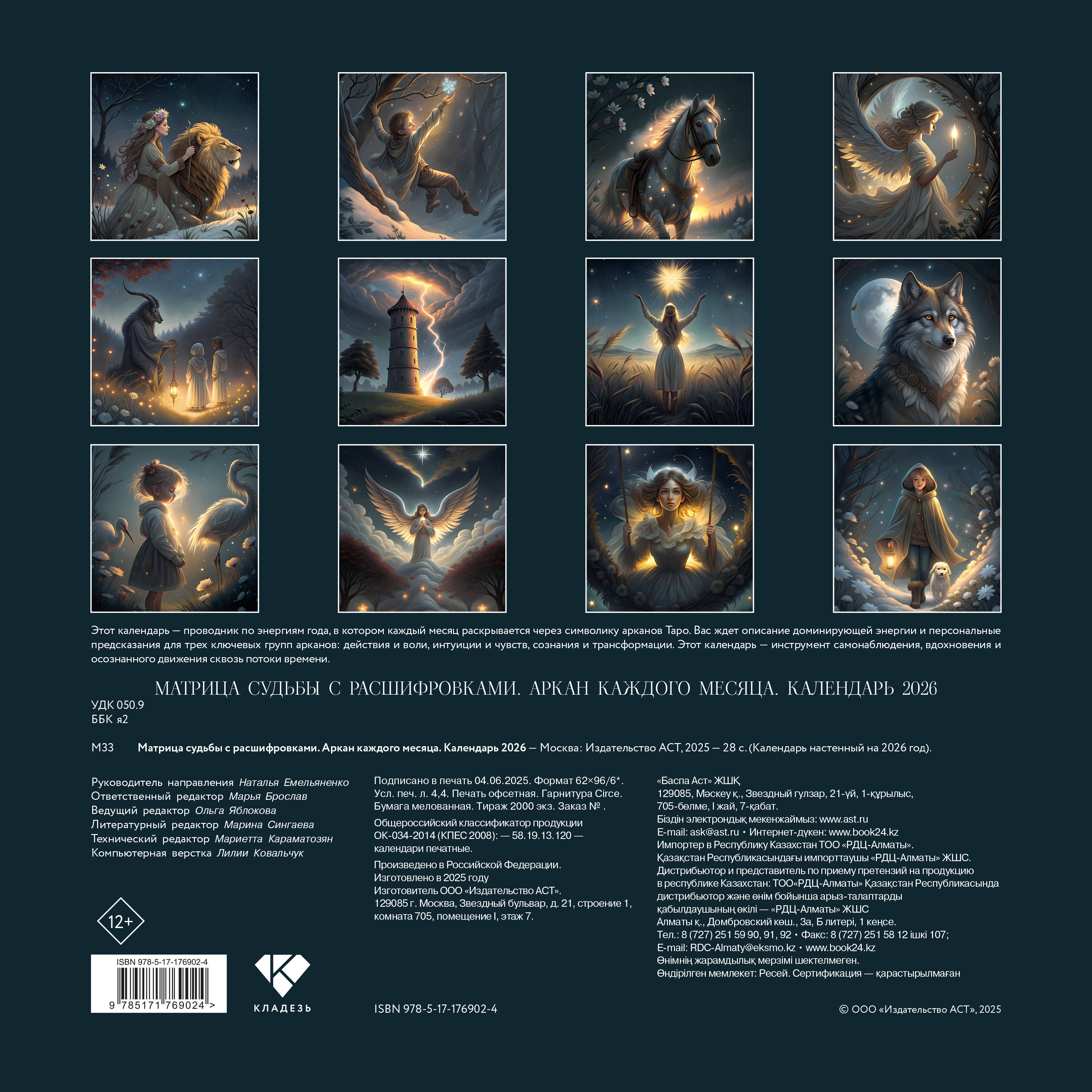 Этот календарь - проводник по энергиям года, в котором каждый месяц раскрывается через символику арканов Таро. Вас ждет описание доминирующей энергии и персональные предсказания для трех ключевых групп арканов: действия и воли, интуиции и чувств, сознания и трансформации. Этот календарь - инструмент самонаблюдения, вдохновения и осознанного движения сквозь потоки времени.| Издательство | Издательство "АСТ" |