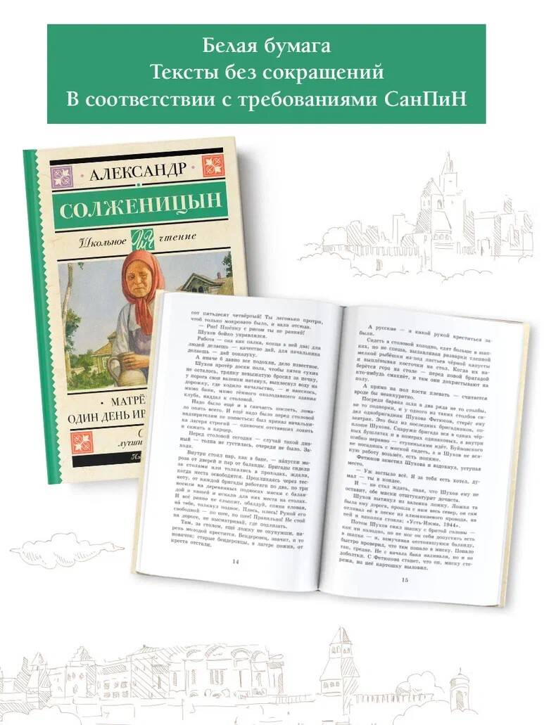 Александр Исаевич Солженицын (1918-2008) был свидетелем и непосредственным участником многих масштабных исторических событий и прошёл свой путь вместе со своим поколением, в полной мере испытав на себе все невзгоды,выпавшие на долю его современников. В рассказе "Матрёнин двор" речь идёт о нелёгкой судьбе русской женщины, пережившей две войны, похоронившей детей, испытавшей тяготы непосильного труда и сохранившей чистую, бескорыстную, живую душу. В книгу также вошёл рассказ "Один день Ивана Денисовича" - первое опубликованное произведение А.И. Солженицына. Оно стало заметным явлением не только в советской, но и в мировой литературе.