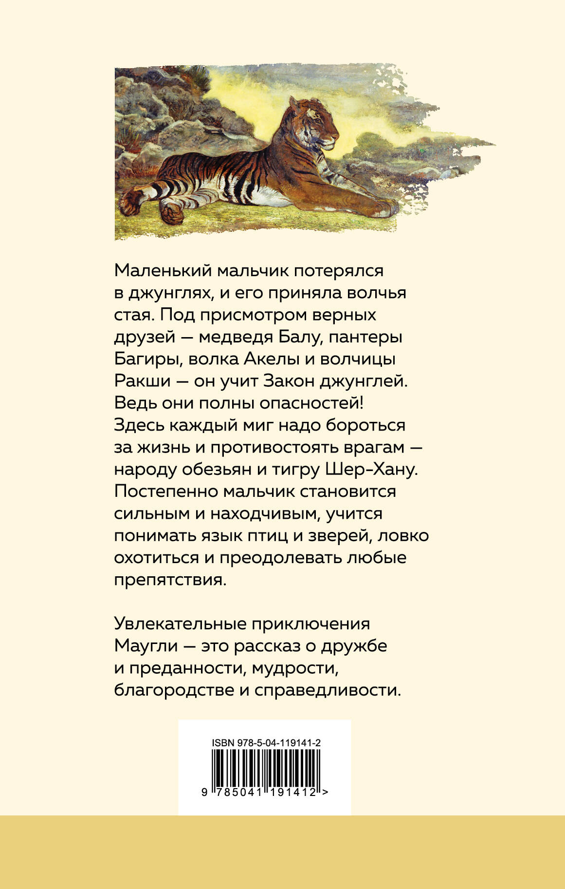 Маленький мальчик потерялся в джунглях, и его приняла волчья стая. Под присмотром верных друзей - медведя Балу, пантеры Багиры, волка Акелы и волчицы Ракши - он учит Закон джунглей. Ведь они полны опасностей! Здесь каждый миг надо бороться за жизнь и противостоять врагам - народу обезьян и тигру Шер-Хану. Постепенно мальчик становится сильным и находчивым, учится понимать язык птиц и зверей, ловко охотиться и преодолевать любые препятствия. Увлекательные приключения Маугли - это рассказ о дружбе и преданности, мудрости, благородстве и справедливости.| Издательство | ООО "Издательство "Эксмо" |