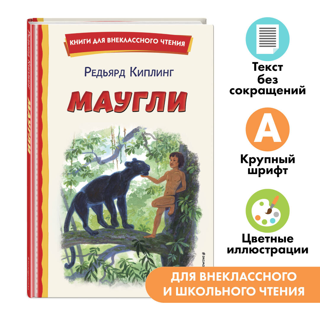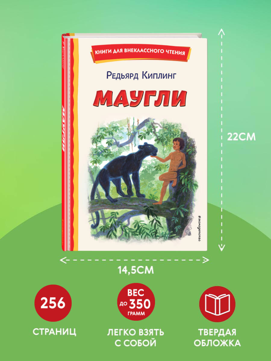 «Маугли» - одна из самых известных сказок английского писателя Редьярда Киплинга, которая рассказывает об удивительной судьбе человеческого детёныша, воспитанного волчьей стаей и ставшего тем, кто смог сблизить два издавна противостоящих друг другу мира - людей и животных. Серия «Книги для внеклассного чтения» - это подборка главных произведений русских и зарубежных авторов, входящих в школьную программу. Лучшие произведения детской литературы с цветными иллюстрациями помогут привить ребёнку любовь к чтению.| Издательство | ООО "Издательство "Эксмо" |