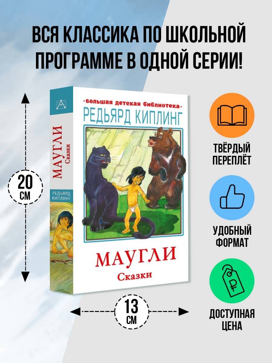 Редьярд Джозеф Киплинг (1865-1936) - английский писатель, журналист и путешественник, лауреат Нобелевской премии по литературе (1907). Именно его перу принадлежит цикл рассказов о мальчике по имени Маугли, воспитанном волками в джунглях Индии. На сегодняшний день эти рассказы являются самыми читаемыми во всем мире, а еще они входят в школьную программу по внеклассному чтению и хрестоматии вместе с не менее известными сказками Редьярда Киплинга ("Кошка, гулявшая сама по себе", Рикки-ТиккиТави" и другими). В нашу книгу вошли рассказы о Маугли и сказки "Рикки-Тикки-Тави", "Сноненок", "Кошка, гулявшая сама по себе", "Откуда взялись броненосцы" и другие. Рассказы о Маугли представлены в классическом переводе Н. Дарузес, а сказки в переводе К. Чуковского. Стихи перевел С. Маршак. Для среднего школьного возраста.| Издательство | ИЗДАТЕЛЬСТВО "АСТ" |